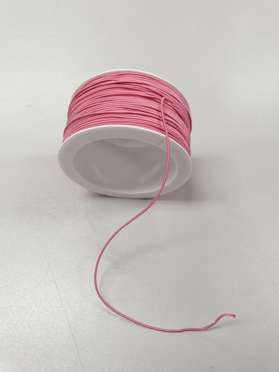 Apvali elastinė guma 1,2 mm, Rožinė. Elastinė juostelė – tai dažniausiai buityje, rūbų siuvimui naudojama guma. Ši guma tinkama dekoravimui, rūbų paraukimui ir net šiaip buityje. Elastinė juostelė (guma) yra naudojama siuviniuose tam, kad galėtume išgauti gaminio tamprumą atitinkamose jo vietose. Tai viena reikalingiausių priemonių kiekvienos siuvėjos aplinkoje. Gumos būna įvairiausių spalvų, pločio ir net tąsumo. Elastinės juostelės (gumos) būna austos, pintos, apvalios, yra gumos su kilpelėmis sagoms. Mūsų turima guma yra aukštos kokybės, tvirta, tinkamai naudojant ilgai išlaiko savo formą ir kokybę. Turime ir spalvotų elastinių juostelių (gumų), kurias galite derinti pagal savo siuvamo gaminio spalvą. Juostelės yra pačio įvairiausio pločio: nuo 1 mm iki 60 mm. Plotį taip pat reikėtų pasirinti pagal siuvamo gaminio stilių ir struktūtą. Guma yra karpoma, kaina nurodyta už 1 m.