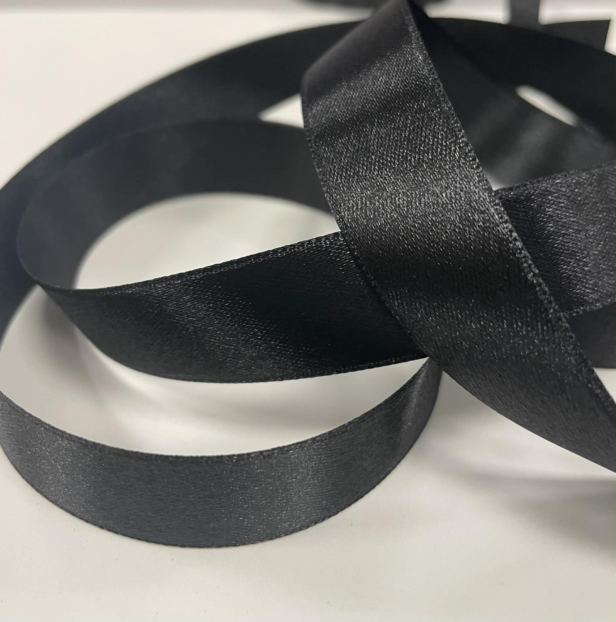 Atlasinė juostelė 20mm, juoda (minkštesnė)
