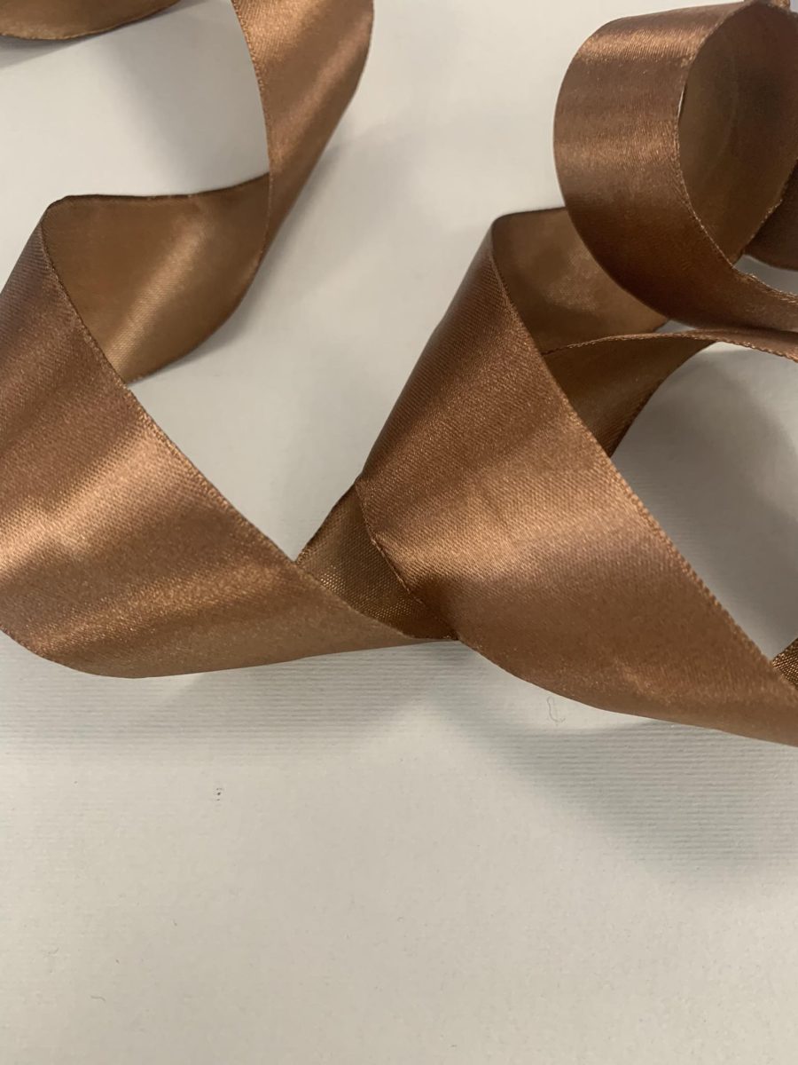 Dekoratyvinė atlasinė juostelė, ruda, tinka įvairiems rankdarbiams: