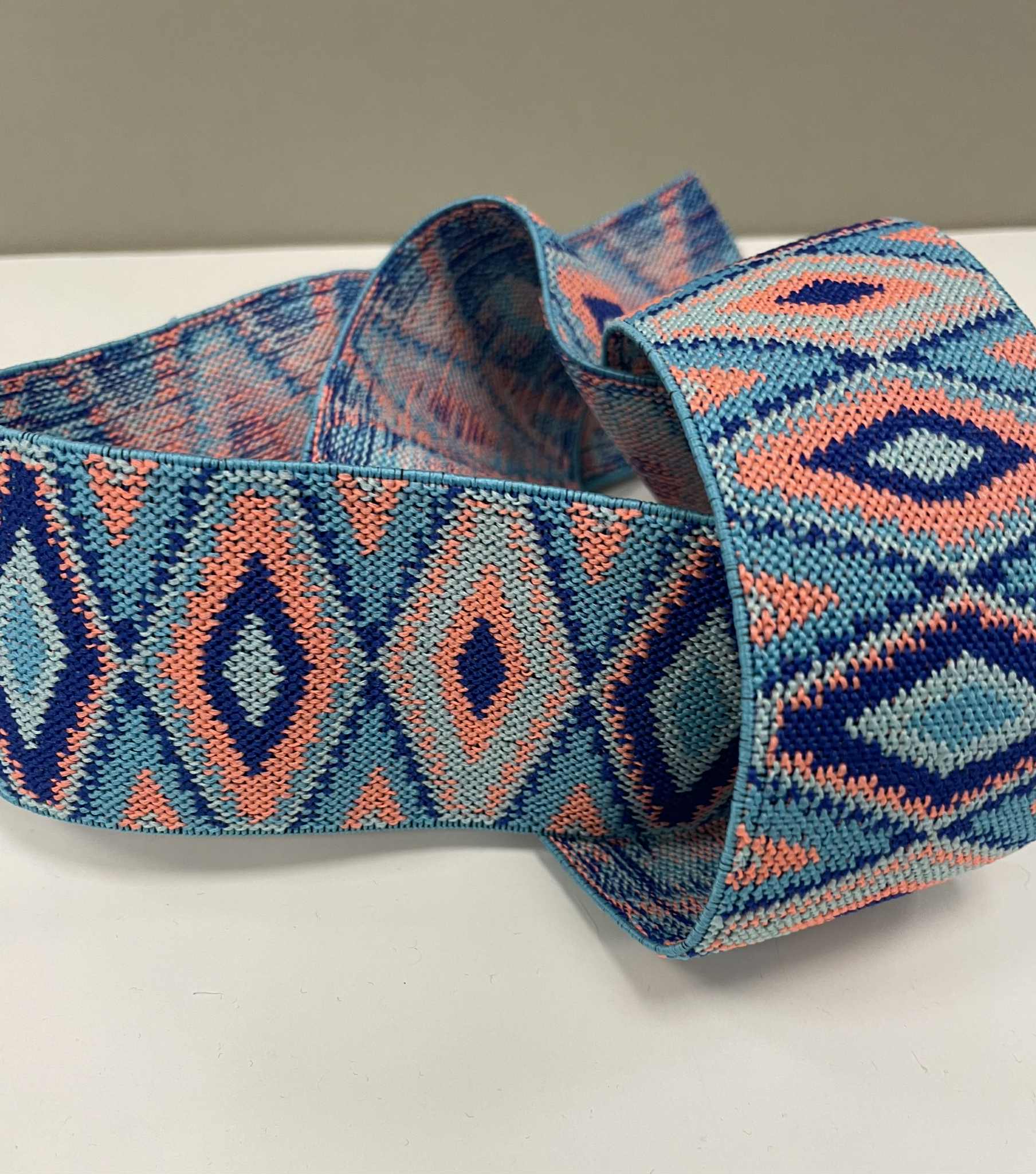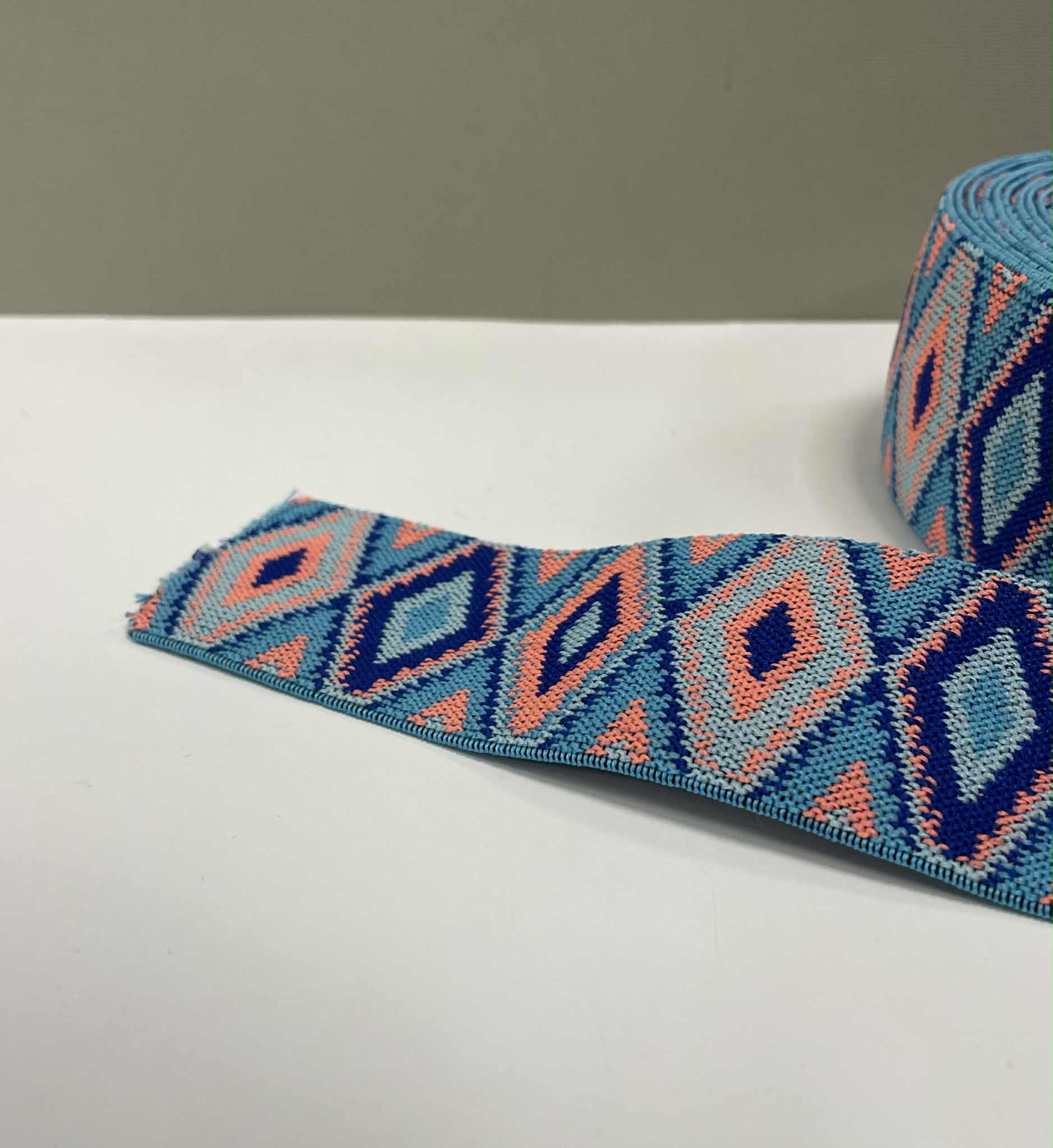 Dekoratyvinė guma 50 mm, Įvairiaspalviai rombai. Guminė juostelė – tai dažniausiai buityje, rūbų siuvimui naudojama elastinė juostelė.  Elastinė juostelė (guma) yra naudojama siuviniuose tam, kad galėtume išgauti gaminio tamprumą atitinkamose jo vietose. Tai viena reikalingiausių priemonių kiekvienos siuvėjos aplinkoje. Gumos būna įvairiausių spalvų, pločio ir net tąsumo. Elastinės juostelės (gumos) būna austos, pintos, apvalios, yra gumos su kilpelėmis sagoms.