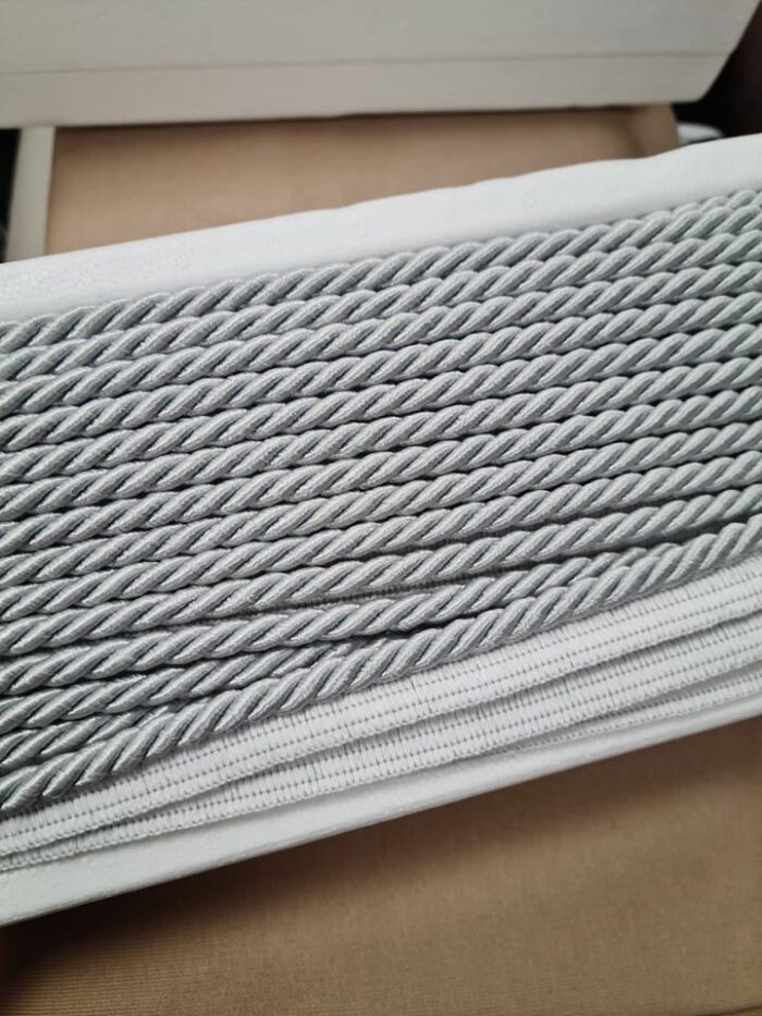 Dekoratyvinė juostelė – virvelė Sidabrinė, 20 mm. Visos dekoratyvinės juostelės – virvelės yra skirtos rankdarbiams dekoruoti arba siuvinių apdailai. Dekoratyvinės juostelės – virvelės suteiks siuviniams išskirtinumo, puošnumo bei išbaigtumo pojūtį. Pas mus juostelių – virvelių rasite įvairių spalvų. Ši juostelė – virvelė gali būti naudojama dekoruoti užuolaidoms, dekoratyvinėms pagalvėlėms, staltiesėms ir kitiems siuviniams. Dekoratyvinė virvelė taip pat naudojama įvairių įvairiausiuose siuviniuose, floristikoje, papuošalų bei kitų rankdarbių gamyboje. Juoselė – virvelė nėra tampri, matuojama metrais.