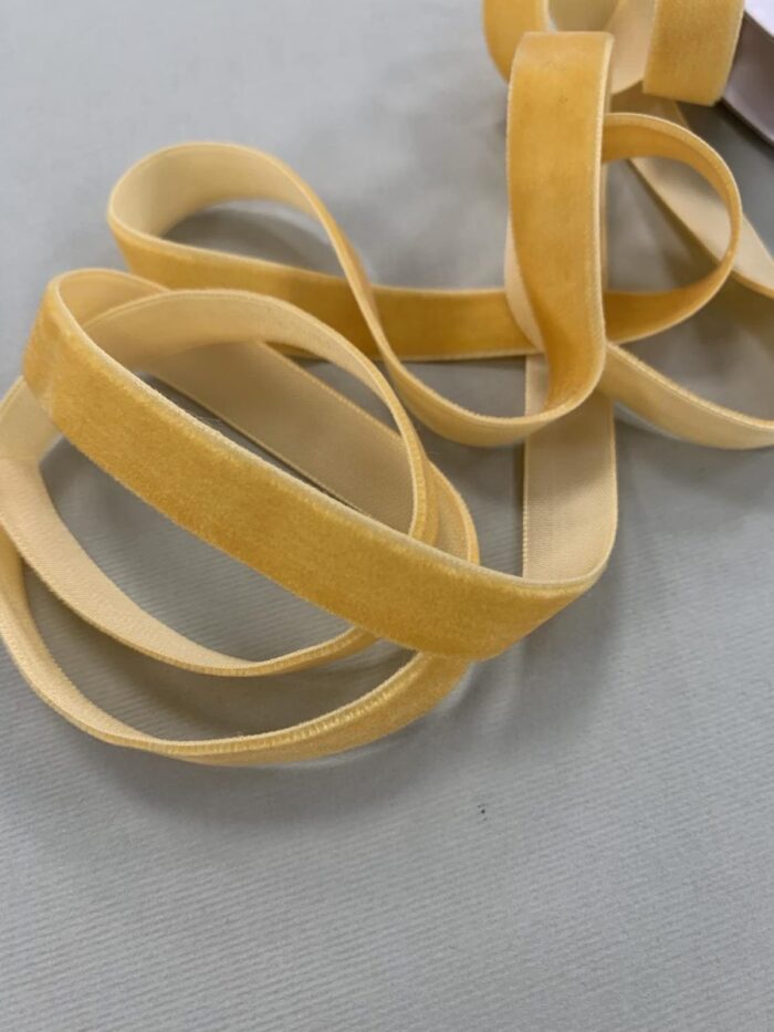 Dekoratyvinė veliūrinė juostelė, 13 mm, ryškiai geltona