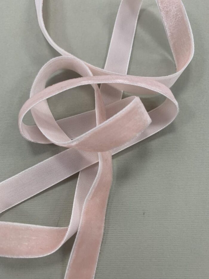 Dekoratyvinė veliūrinė juostelė, 13 mm, šviesiai rožinė