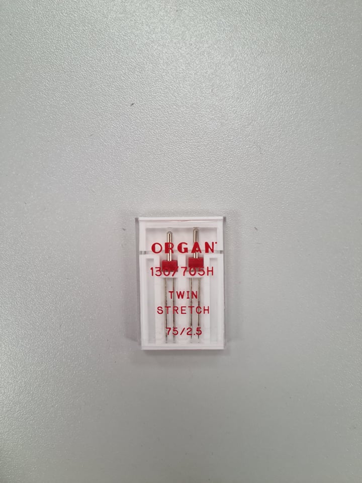 Dviguba adata Twin Stretch 75/2.5 ORGAN. Kiekvienai siuvėjai siuvant yra labai svarbus jos darbo įrankis – siuvimo mašina. Mašininės adatos yra viena svarbiausių siuvimo mašinos sudėtinių dalių. Siuvimo adatos skiriasi savo storiu, pagal savo storį turi ir atitinkamą numerį. Adatos numeris dažniausiai nurodomas dviem dydžiais: metrinės ir imperinės sistemos. pagal metrinę sistemą adatos numeris nurodo smaigalio storį šimtosiomis milimetro dalimis. Pavyzdžiui, 55 numerio adatos storis bus 0,55 mm, 120 – 1,2 mm. Siuvimo adata turi būti tiesi – jei siūsite lenta adata rūbo siūlė bus nelygi. Adata turi turėti blizgantį poliruotą paviršių ir gerai užaštrintą galiuką. Siuvimo adatos visada turi būti laikomos sausoje vietoje.