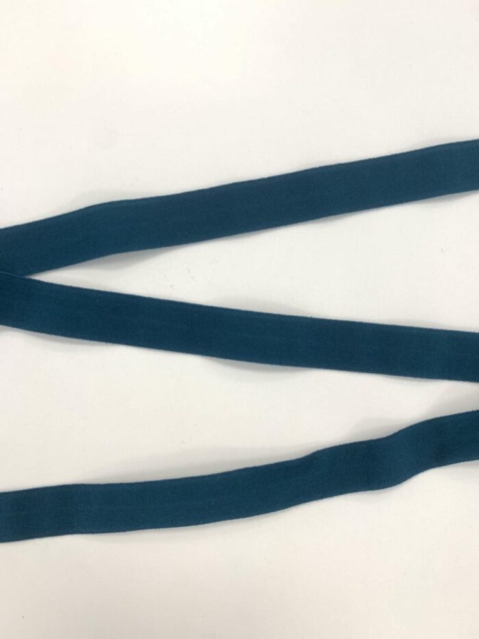 Elastinė kantavimo juostelė 14 mm, Petrol. Elastinė juostelė naudojama viršutinių – moteriškų, vyriškų bei vaikiškų rūbų, apatinio trikotažo apdailai, drabužių rankovių, apačios bei kaklo iškirpčių dekoravimui ir apadailai. Kantavimo juostelė yra tampri, paruošta dekoratyviniam kantavimui. Kantavimo juostelė skirta trikotažui ir ne tik – tai dažniausiai naudojama kantavimo juostelė rūbų ar namų apyvokos daiktų – pagalvėlių, staltiesių, servetėlių dekoravimui. Elastinė kantavimo juostelė yra naudojama siuviniuose tam, kad galėtume išgauti gaminio tamprumą atitinkamose jo vietose. Tai viena reikalingiausių priemonių kiekvienos siuvėjos aplinkoje. Elastinės kantavimo juostelės būna įvairiausių spalvų, pločio ir net tąsumo. Mūsų turima elastinė kantavimo juostelė yra aukštos kokybės, tvirta, tinkamai naudojant ilgai išlaiko savo formą ir kokybę. Elastinės kantavimo juostelės yra karpomos, kaina nurodyta už 1 m. Ši elastinė kantavimo juostelė turi lenkimo liniją per vidurį, todėl ją siūti labai patogu.
