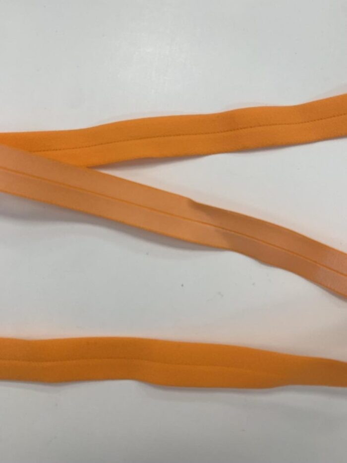 Elastinė kantavimo juostelė su stabilizuota blogąja puse 15 mm, Oranžinė. Elastinė juostelė naudojama viršutinių – moteriškų, vyriškų bei vaikiškų rūbų, apatinio trikotažo apdailai, drabužių rankovių, apačios bei kaklo iškirpčių dekoravimui ir apadailai. Kantavimo juostelė yra ne itin tampri, paruošta dekoratyviniam kantavimui. Kantavimo juostelė skirta trikotažui ir ne tik – tai dažniausiai naudojama kantavimo juostelė rūbų ar namų apyvokos daiktų – pagalvėlių, staltiesių, servetėlių dekoravimui. Elastinė kantavimo juostelė yra naudojama siuviniuose tam, kad galėtume išgauti gaminio tamprumą atitinkamose jo vietose. Tai viena reikalingiausių priemonių kiekvienos siuvėjos aplinkoje. Elastinės kantavimo juostelės būna įvairiausių spalvų, pločio ir net tąsumo. Mūsų turima elastinė kantavimo juostelė yra aukštos kokybės, tvirta, tinkamai naudojant ilgai išlaiko savo formą ir kokybę. Elastinės kantavimo juostelės yra karpomos, kaina nurodyta už 1 m. Ši elastinė kantavimo juostelė turi lenkimo liniją per vidurį, todėl ją siūti labai patogu.