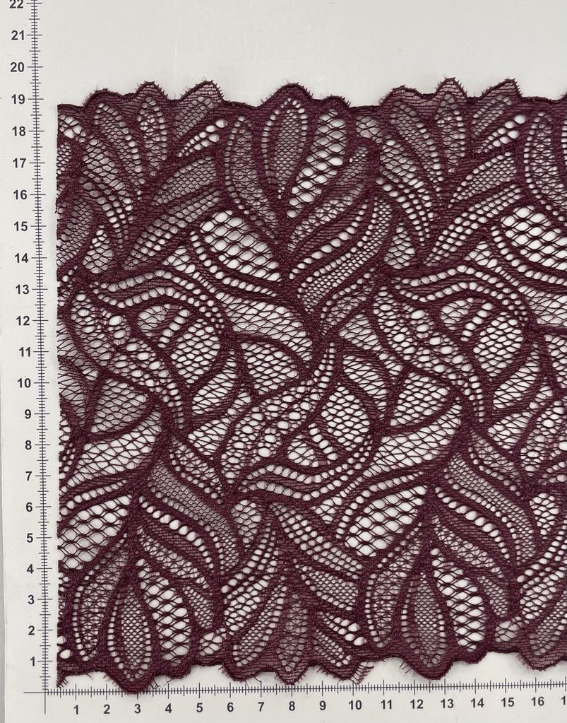 Elastinis nėrinys Bordo GIP-43. Elastiniai nėrinukai yra įvairių spalvų ir įvairių pločių. Elastinis nėrinukas dažniausiai naudojamas viršutinių (suknelių, sijonų, palaidinukių, glaustinukių) apatinių bei naktinių drabužių dekoravimui. Elastinis nėrinukas dekoruojamam rūbui suteikia elegantiškumo bei išskirtinumo. Kiekviena detalė su elastiniu nėrinuku suteikia seksualumo, apgaubia paslaptingumo skraiste, suteikia orginalumo. Elastiniai nėrinukai būna marginti įvairiomis formomis, gėlėmis ar šiaip raštais. Šie elastiniai nėrinukai dažnai naudojami ir rankdarbiams: gaminti keliaraiščiams, galvos juostelėms, dekoracijoms vestuvėms ar krikštynoms. Galima iškarpyti nėrinuko detales ir naudoti įvairiems rankdarbiams ar dekoravimui. Nėrinukus galima derinti su viskoziniu, sintetiniu ar plonos medvilnės trikotažu. Juoselė yra elastinga, matuojama metrais. Raštuotu elastiniu nėriniu dekoruoti rūbai dvelkia prabanga ir elegancija. Priderinkite nėrinuko plotį, spalvą bei raštą prie norimo papuošti rūbo ir tapsite išskirtinė!