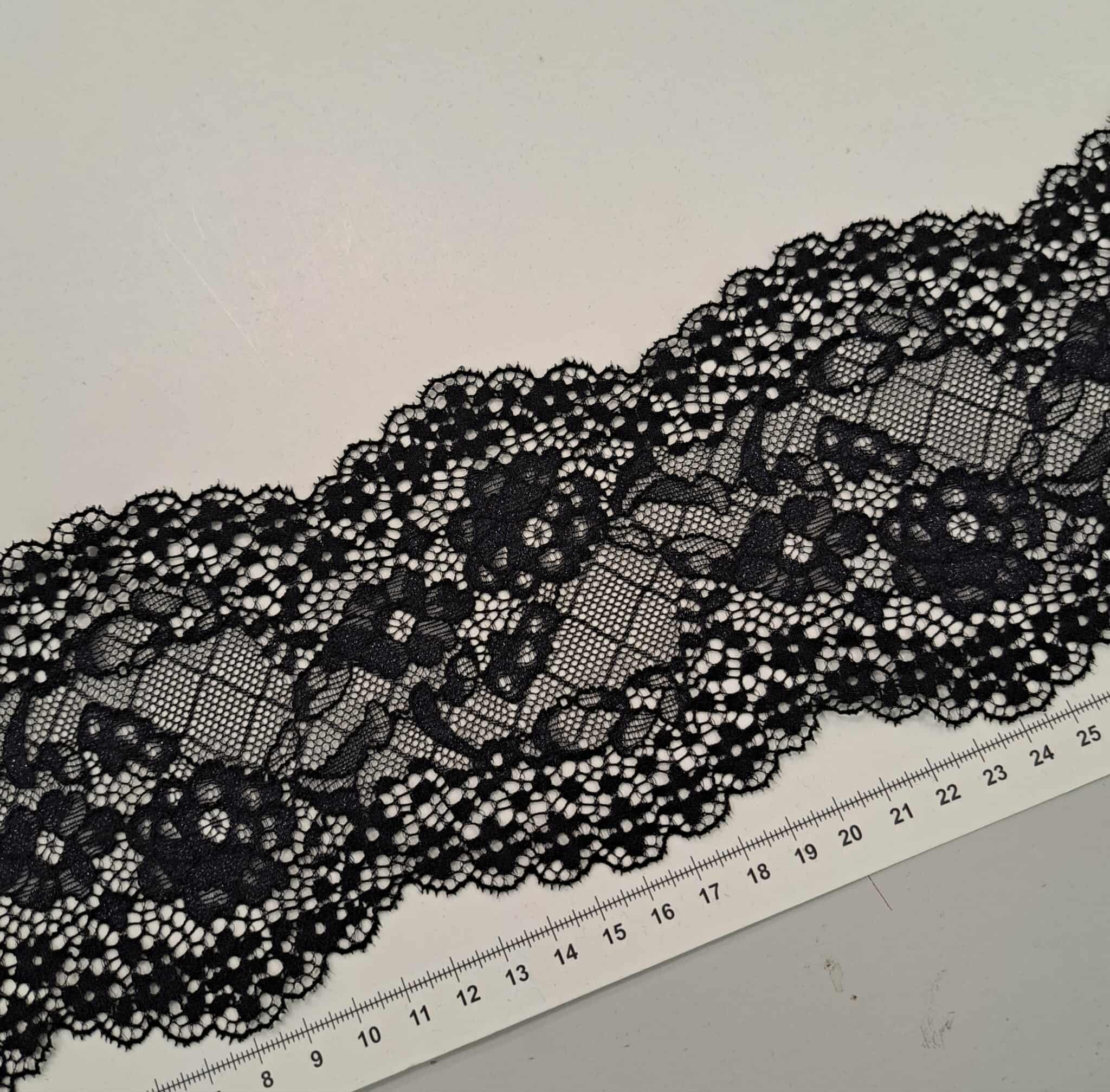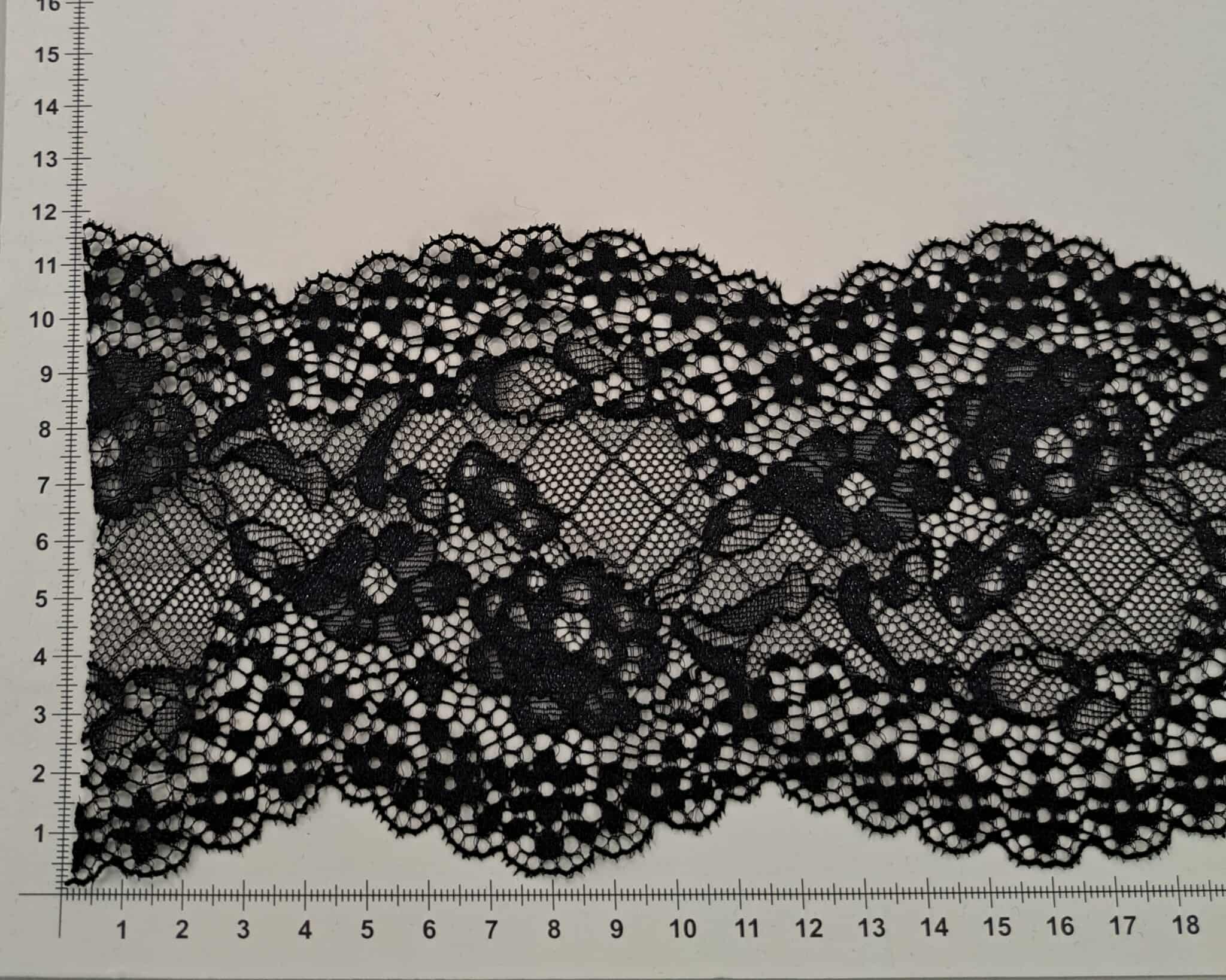 Elastinis nėrinys Juodas GIP-69. Elastiniai nėrinukai yra įvairių spalvų ir įvairių pločių. Elastinis nėrinukas dažniausiai naudojamas viršutinių (suknelių, sijonų, palaidinukių, glaustinukių) apatinių bei naktinių drabužių dekoravimui. Elastinis nėrinukas dekoruojamam rūbui suteikia elegantiškumo bei išskirtinumo. Kiekviena detalė su elastiniu nėrinuku suteikia seksualumo, apgaubia paslaptingumo skraiste, suteikia orginalumo. Elastiniai nėrinukai būna marginti įvairiomis formomis, gėlėmis ar šiaip raštais. Šie elastiniai nėrinukai dažnai naudojami ir rankdarbiams: gaminti keliaraiščiams, galvos juostelėms, dekoracijoms vestuvėms ar krikštynoms. Galima iškarpyti nėrinuko detales ir naudoti įvairiems rankdarbiams ar dekoravimui. Nėrinukus galima derinti su viskoziniu, sintetiniu ar plonos medvilnės trikotažu. Juoselė yra elastinga, matuojama metrais. Raštuotu elastiniu nėriniu dekoruoti rūbai dvelkia prabanga ir elegancija. Priderinkite nėrinuko plotį, spalvą bei raštą prie norimo papuošti rūbo ir tapsite išskirtinė!