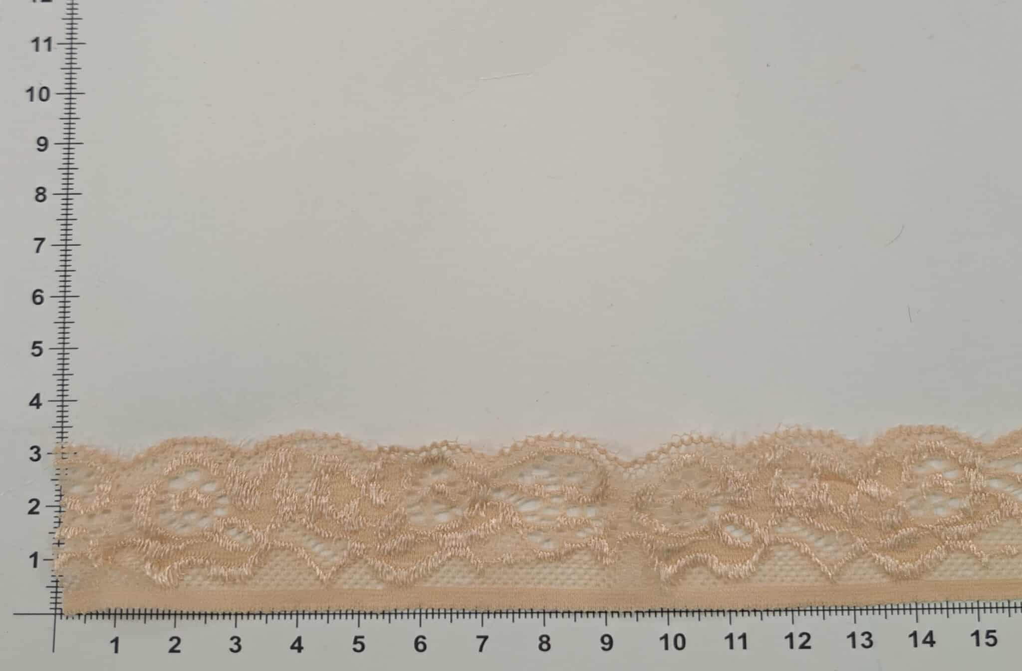 Elastinis nėrinys Smėlinis EN-94 Elastiniai nėrinukai yra įvairių spalvų ir įvairių pločių. Elastinis nėrinukas dažniausiai naudojamas viršutinių (suknelių, sijonų, palaidinukių, glaustinukių) apatinių bei naktinių drabužių dekoravimui. Elastinis nėrinukas dekoruojamam rūbui suteikia elegantiškumo bei išskirtinumo. Kiekviena detalė su elastiniu nėrinuku suteikia seksualumo, apgaubia paslaptingumo skraiste, suteikia orginalumo, seksualumo ir pasitikėjimo savimi. Elastiniai nėrinukai būna marginti įvairiomis formomis, gėlėmis ar šiaip raštais. Šie elastiniai nėrinukai dažnai naudojami ir rankdarbiams: gaminti keliaraiščiams, galvos juostelėms, dekoracijoms vestuvėms ar krikštynoms. Galima iškarpyti nėrinuko detales ir naudoti įvairiems rankdarbiams ar dekoravimui. Nėrinukus galima derinti su viskoziniu, sintetiniu ar plonos medvilnės trikotažu. Juoselė yra elastinga, matuojama metrais. Raštuotu elastiniu nėriniu dekoruoti rūbai dvelkia prabanga ir elegancija. Priderinkite nėrinuko plotį, spalvą bei raštą prie norimo papuošti rūbo ir tapsite išskirtinė!