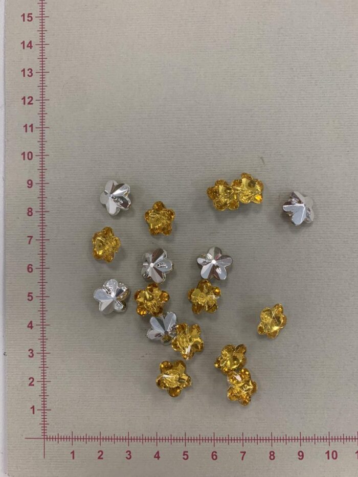 Geltona gėlytės formos saga sidabriniu pagrindu