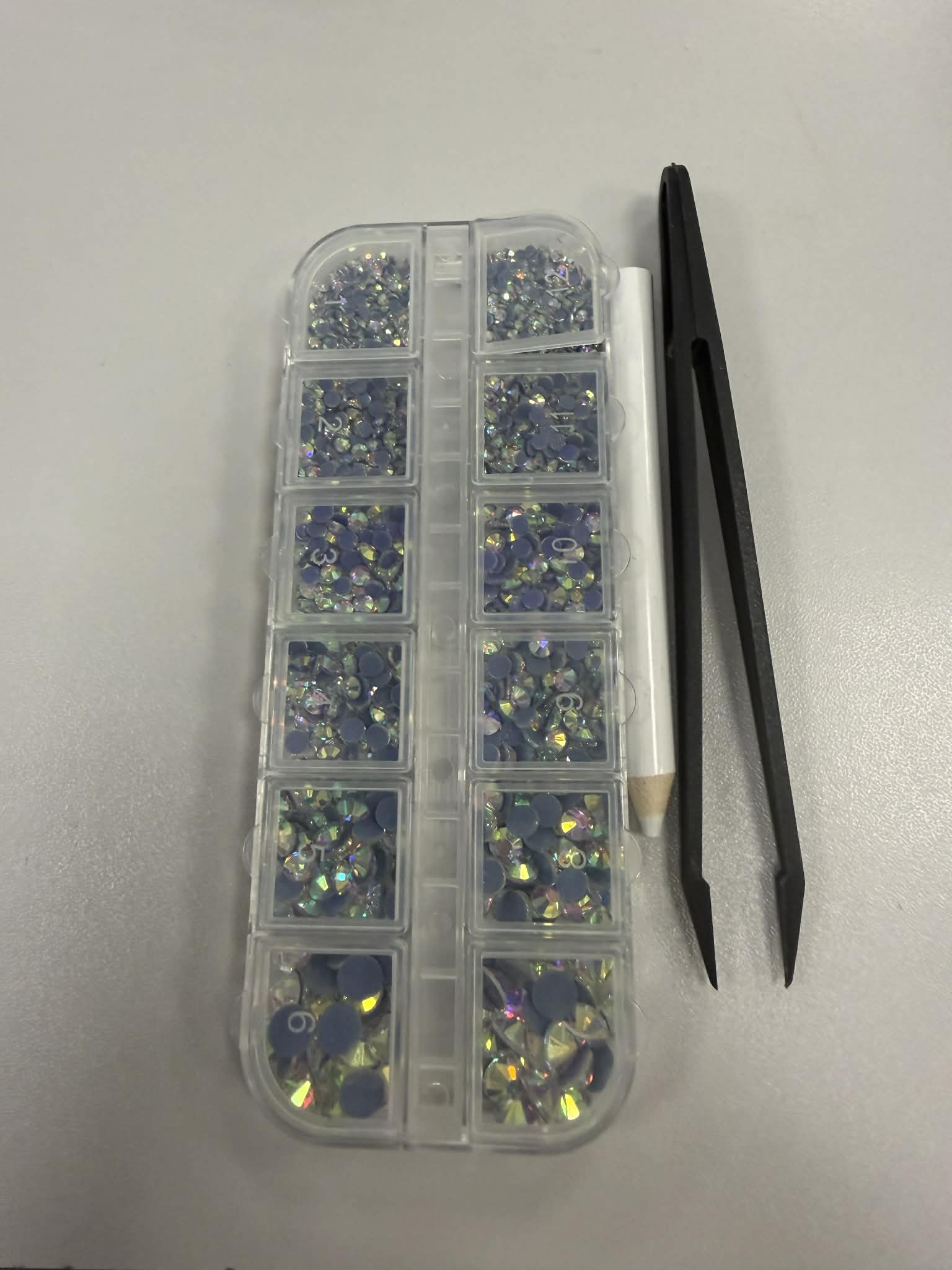 • Rinkinyje yra 2000 vnt. 6 skirtingų dydžių ir dviejų spalvų kristalai