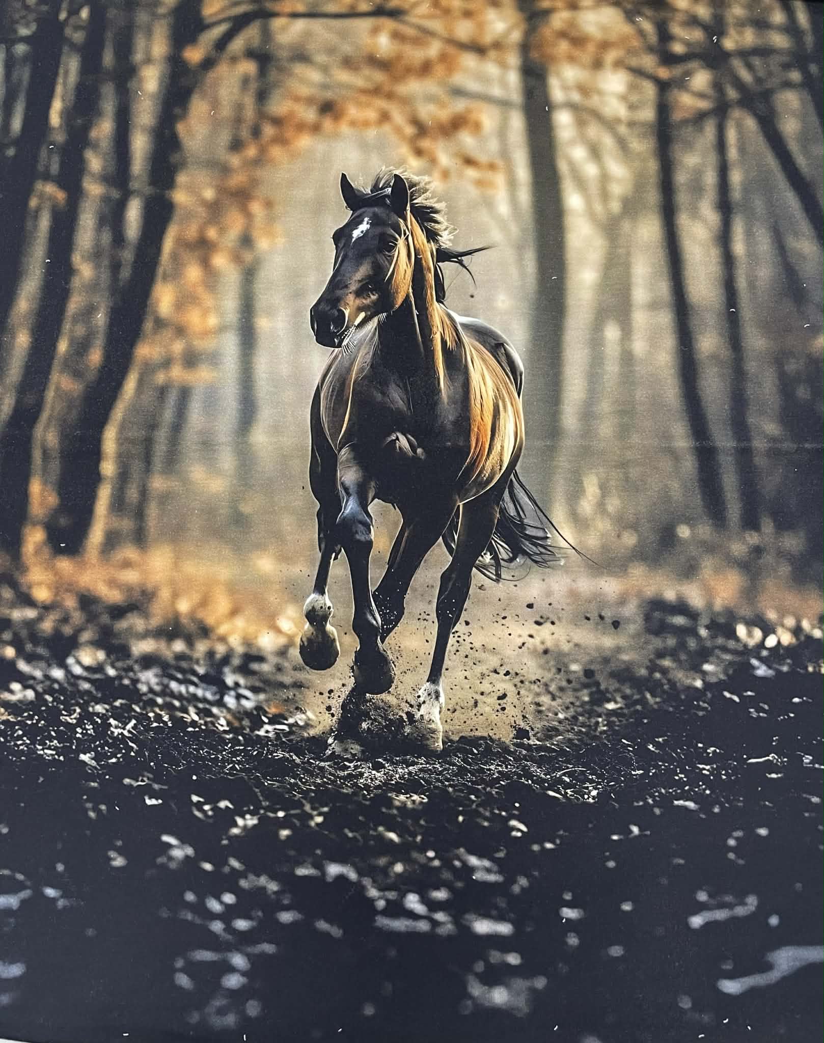Kilpinio, skaitmeninės spaudos trikotažo panelė 60x70cm Juodas žirgas