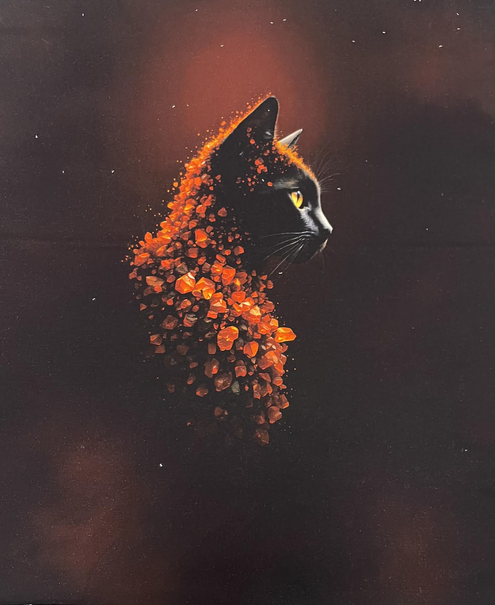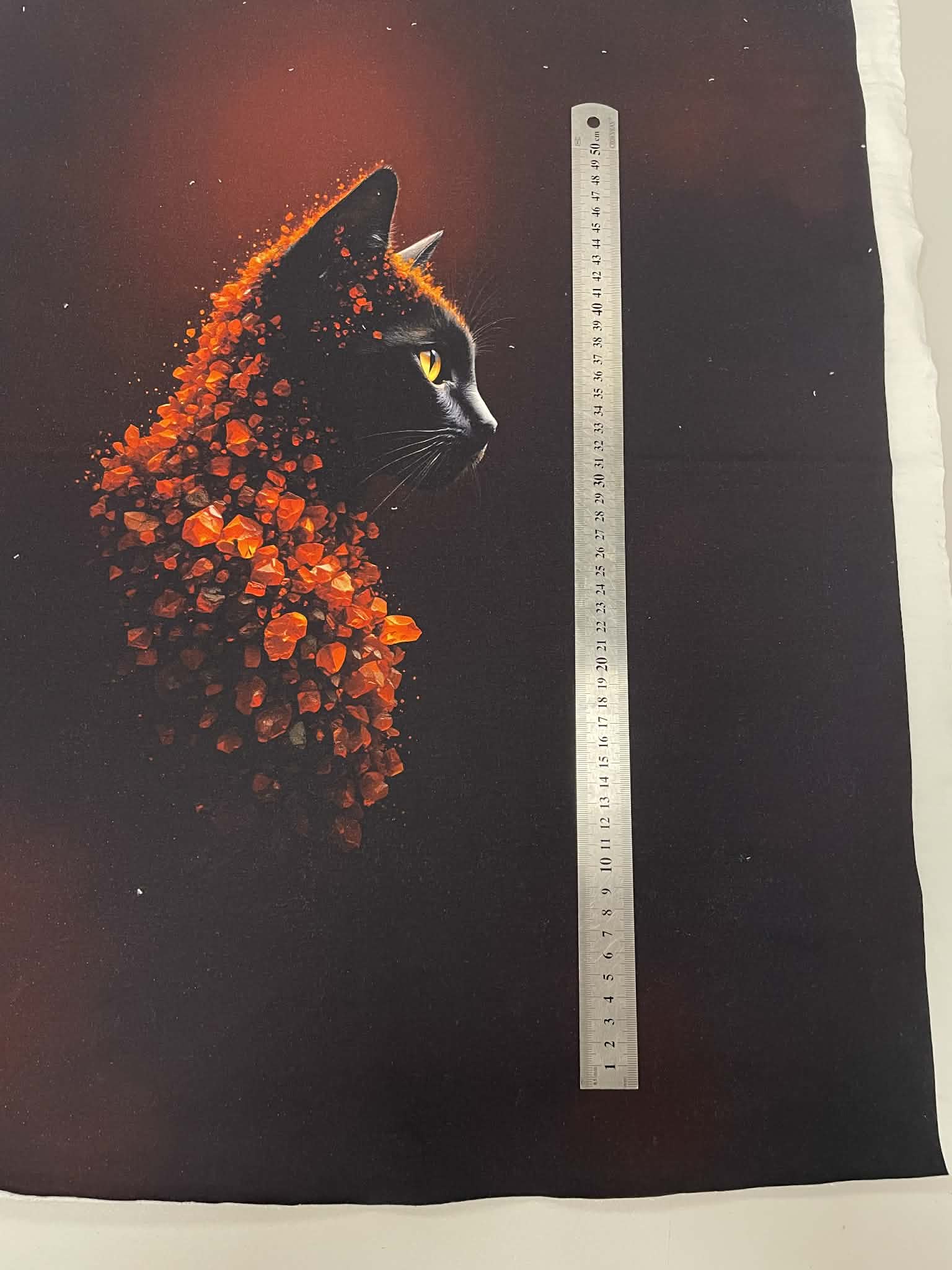 Kilpinio, skaitmeninės spaudos trikotažo panelė 60x70cm Katinas iš deimančiukų