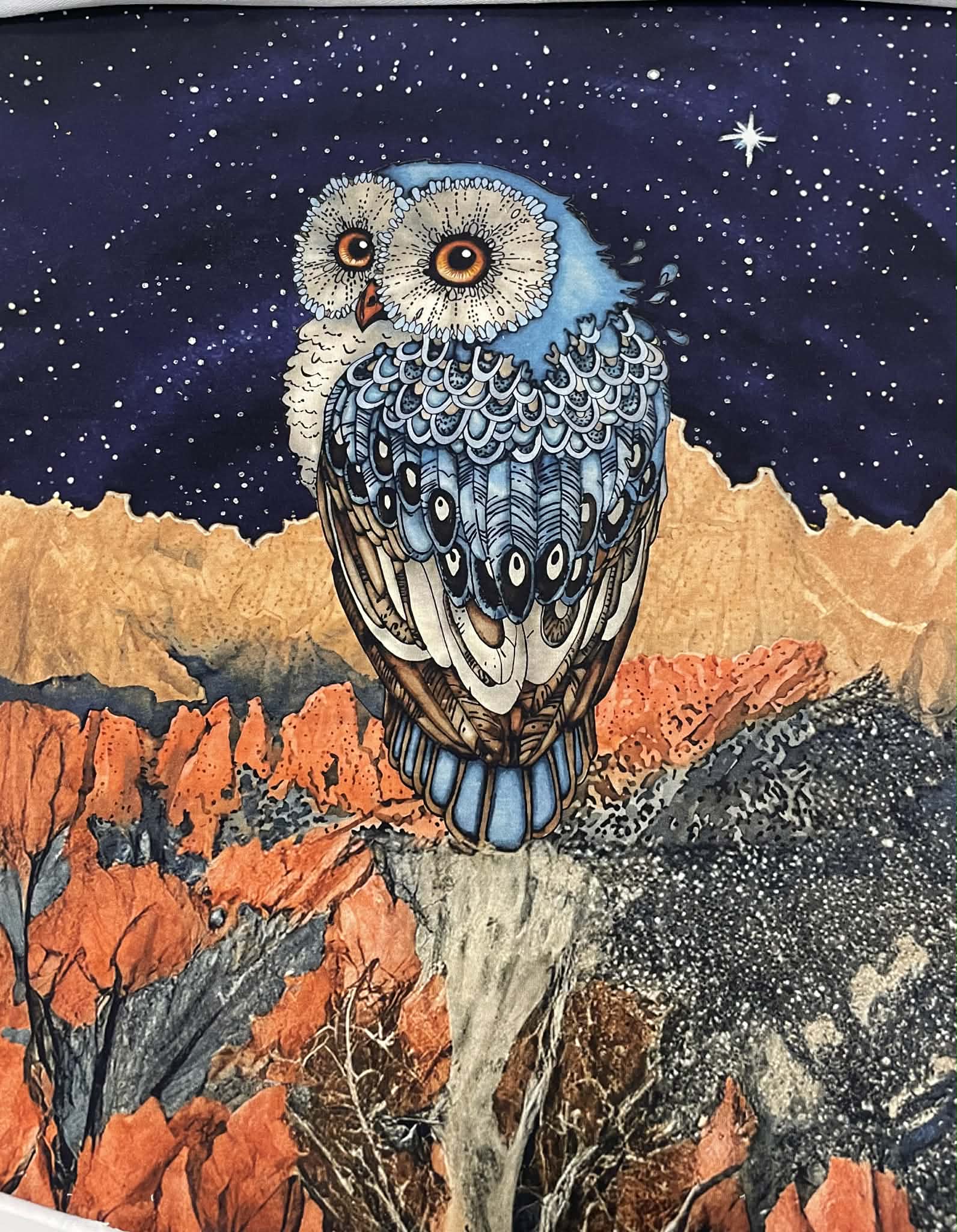 Kilpinio, skaitmeninės spaudos trikotažo panelė 60x70cm Pelėda