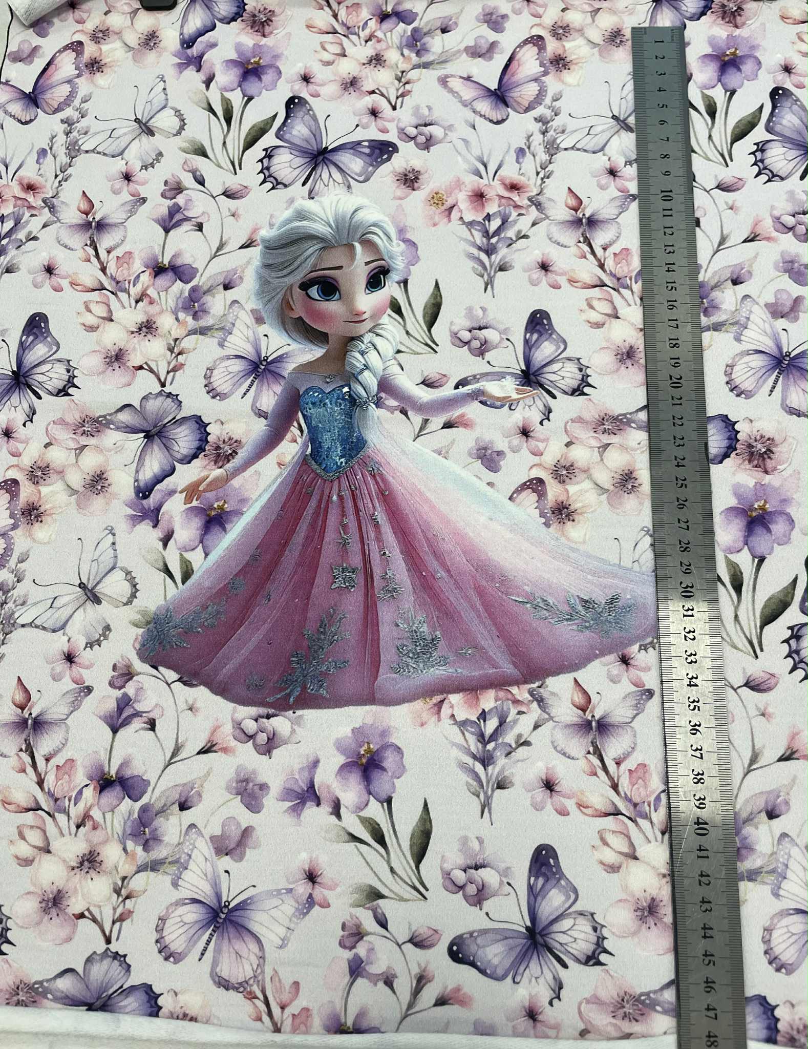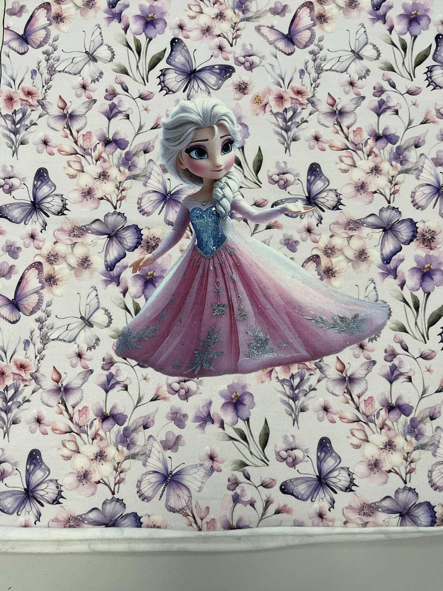 Kilpinio, skaitmeninės spaudos trikotažo panelė Elza. Spalvota skaitmeninė spauda šiuo metu yra vienas iš moderniausių spausdinimo metodų ant tekstilės. Tai ekologiška spauda, nes jos gamybai naudojami skaitmeninei spaudai skirti vandeniniai dažai. Spauda ypatingai švelni ir kokybiška – neatsiranda vaizdo įtrūkimų net trikotažą stipriai ištempus, spalvos neišblunka bei tarnauja kelerius metus. Tuo pačiu skaitmeninė spauda ypatinga savo beribe spalvine gama ir akį traukiančiomis spalvomis. Paveiksliukai pasižymi nepriekaištinga raiška ir vaizdu, dėl naudojamų aukštos kokybės dažų piešinėliai nebijo atmosferos pokyčių (karščio, drėgmės) ir juos drąsiai galima skalbti. Pats kilpinis trikotažas – šiuo metu populiariausia ir dažniausiai naudojama trikotažo rūšis. Kilpinis trikotažas yra kokybiška, viengubo mezgimo medžiaga. Dėl savo elastingumo, malonumo, purumo ir paklusnumo siuvant šis audinys ypatingai tinka siūti laisvalaikio rūbams: sportiniams kostiumams, tunikoms, palaidinukėms, džemperiams, kelnėms, tamprėms, kepurėms, movoms ir pan. Kilpinis trikotažas yra neplonas, tvirtas ir kokybiškas, todėl tinka įvairių rūbų siuvimui ne tik suaugusiems, bet ir vaikams bei kūdikiams. Iš šios medžiagos pasiūti drabužiai malonūs dėvėti, patvarūs, paprastai skalbiami ir puikiai sugeriantys bei išgarinantys drėgmę, leidžiantys kūnui kvėpuoti.