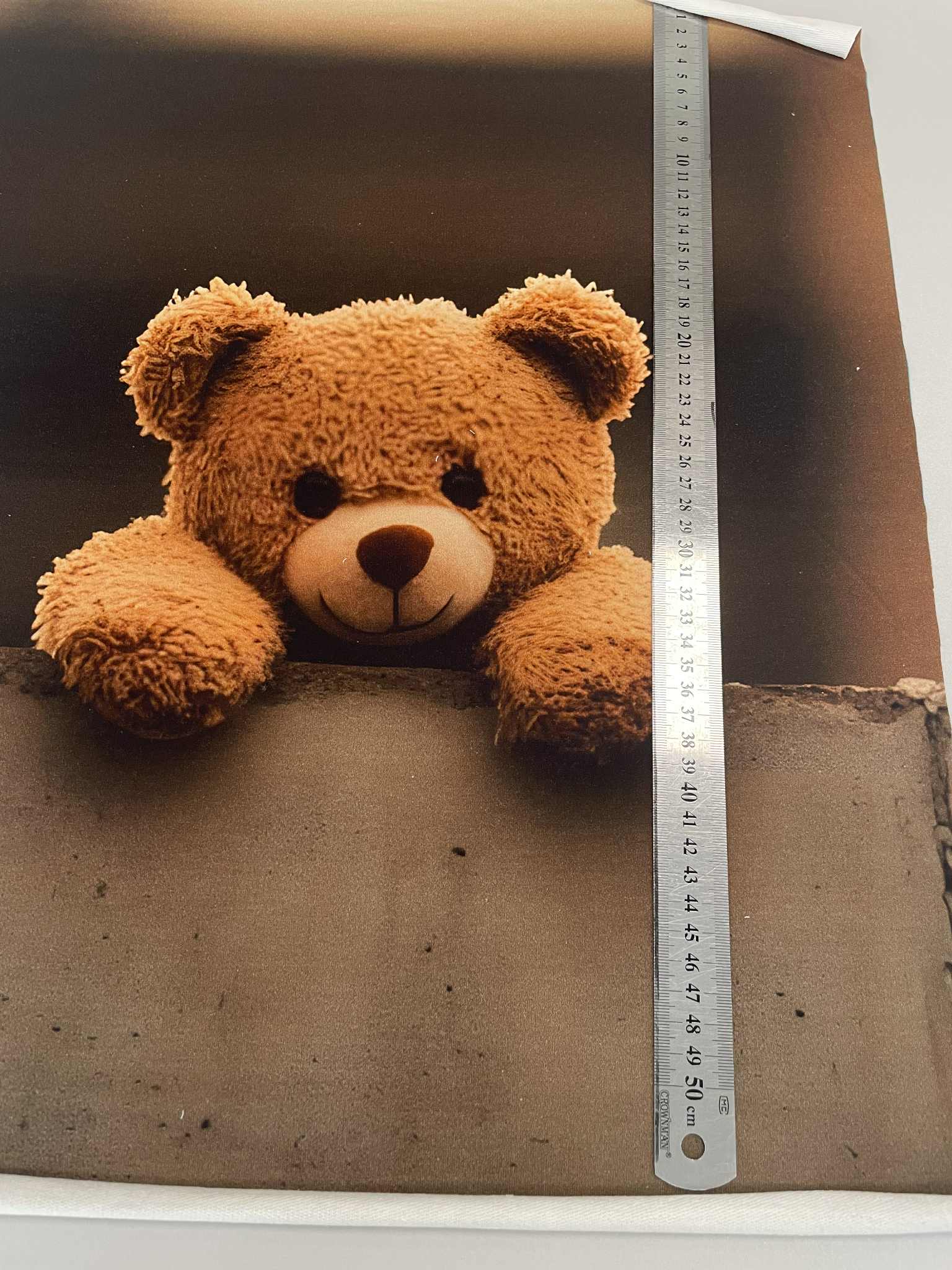 Kilpinio, skaitmeninės spaudos trikotažo panelė Meškiukas žiūri