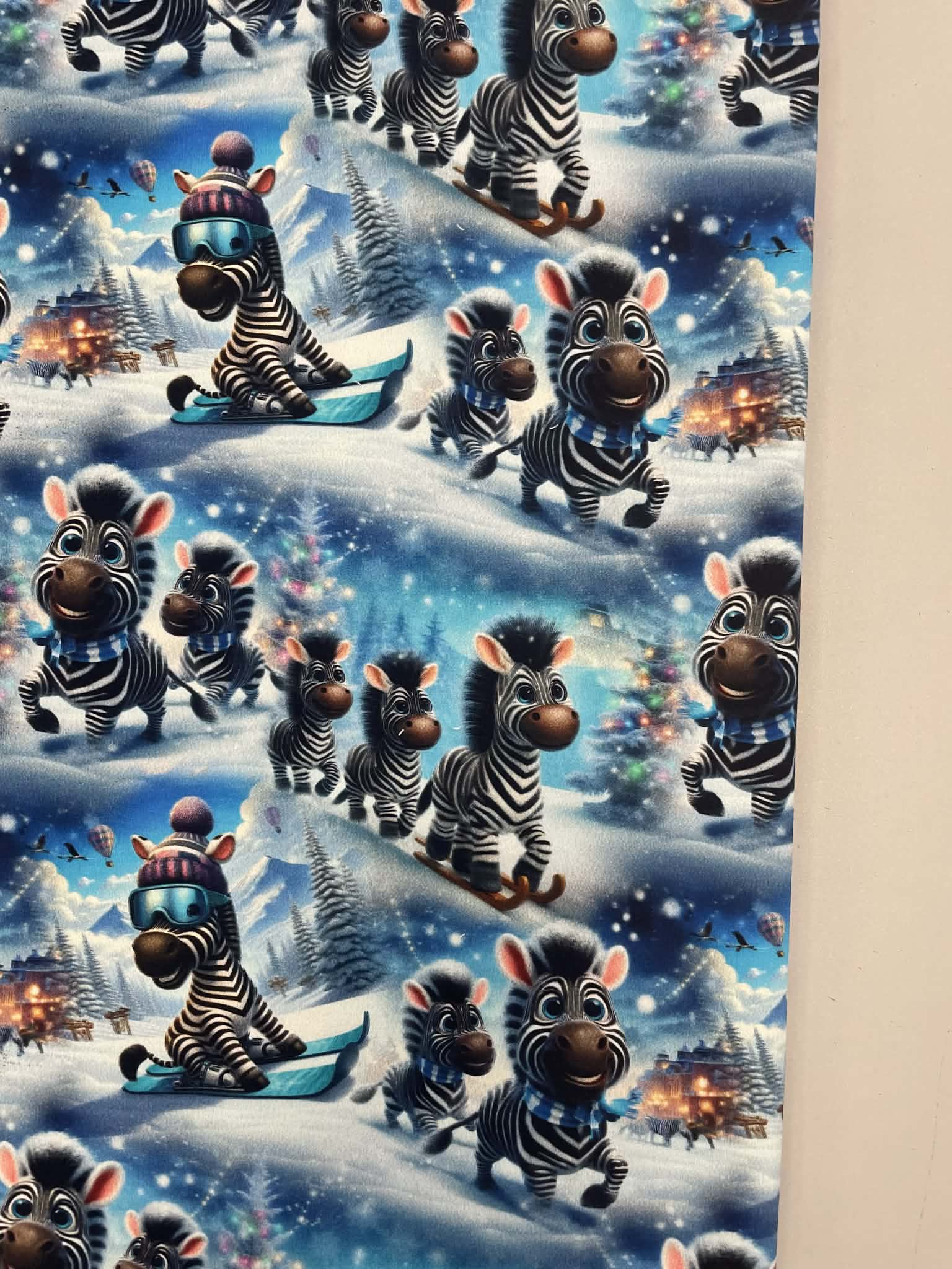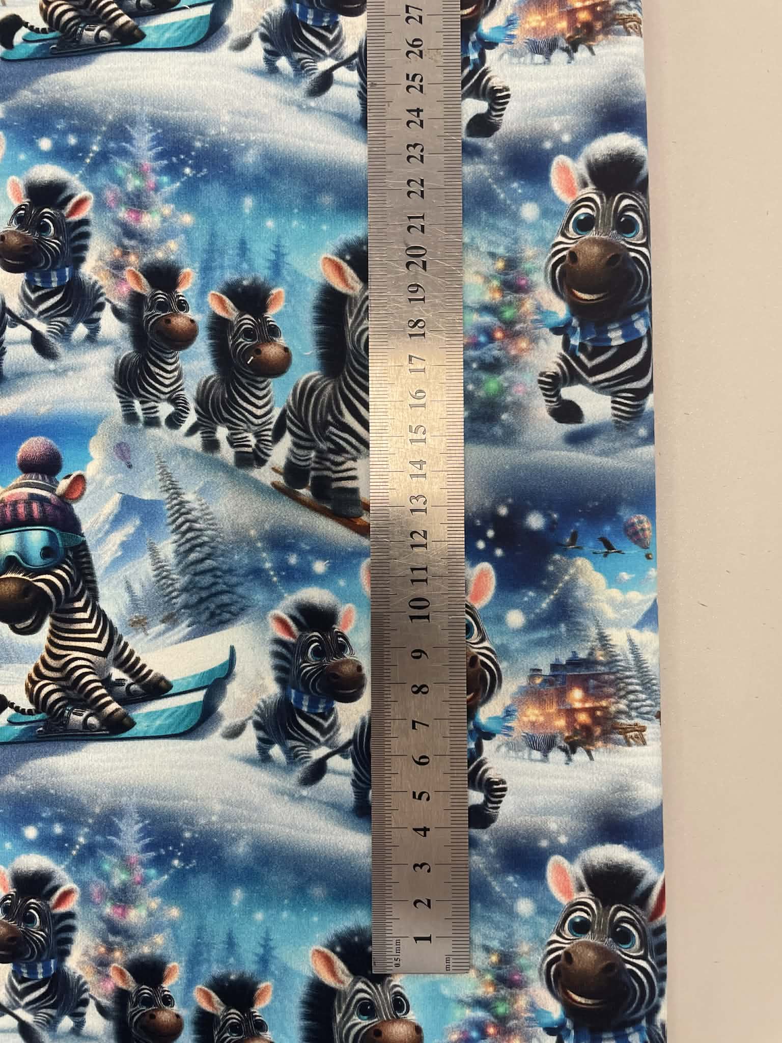 Kilpinis, skaitmeninės spaudos trikotažas Linksmi zebriukai- tai skaitmenine spauda marginta kilpinė medžiaga. Spalvota skaitmeninė spauda šiuo metu yra vienas iš moderniausių spausdinimo metodų ant tekstilės. Tai ekologiška spauda, nes jos gamybai naudojami skaitmeninei spaudai skirti vandeniniai dažai. Spauda ypatingai švelni ir kokybiška – neatsiranda vaizdo įtrūkimų net trikotažą stipriai ištempus, spalvos neišblunka bei tarnauja kelerius metus. Tuo pačiu skaitmeninė spauda ypatinga savo beribe spalvine gama ir akį traukiančiomis spalvomis. Paveiksliukai pasižymi nepriekaištinga raiška ir vaizdu, dėl naudojamų aukštos kokybės dažų piešinėliai nebijo atmosferos pokyčių (karščio, drėgmės) ir juos drąsiai galima skalbti. Pats kilpinis trikotažas – šiuo metu populiariausia ir dažniausiai naudojama trikotažo rūšis. Kilpinis trikotažas yra kokybiška, viengubo mezgimo medžiaga. Dėl savo elastingumo, malonumo, purumo ir paklusnumo siuvant šis audinys ypatingai tinka siūti laisvalaikio rūbams: sportiniams kostiumams, tunikoms, palaidinukėms, džemperiams, kelnėms, tamprėms, kepurėms, movoms ir pan. Kilpinis trikotažas yra neplonas, tvirtas ir kokybiškas, todėl tinka įvairių rūbų siuvimui ne tik suaugusiems, bet ir vaikams bei kūdikiams. Iš šios medžiagos pasiūti drabužiai malonūs dėvėti, patvarūs, paprastai skalbiami ir puikiai sugeriantys bei išgarinantys drėgmę, leidžiantys kūnui kvėpuoti. Pagrindinis medvilnės privalumas – higieniškumas, todėl puikiai tinka drabužiams, kurie tiesiogiai liečiasi su žmogaus kūnu.