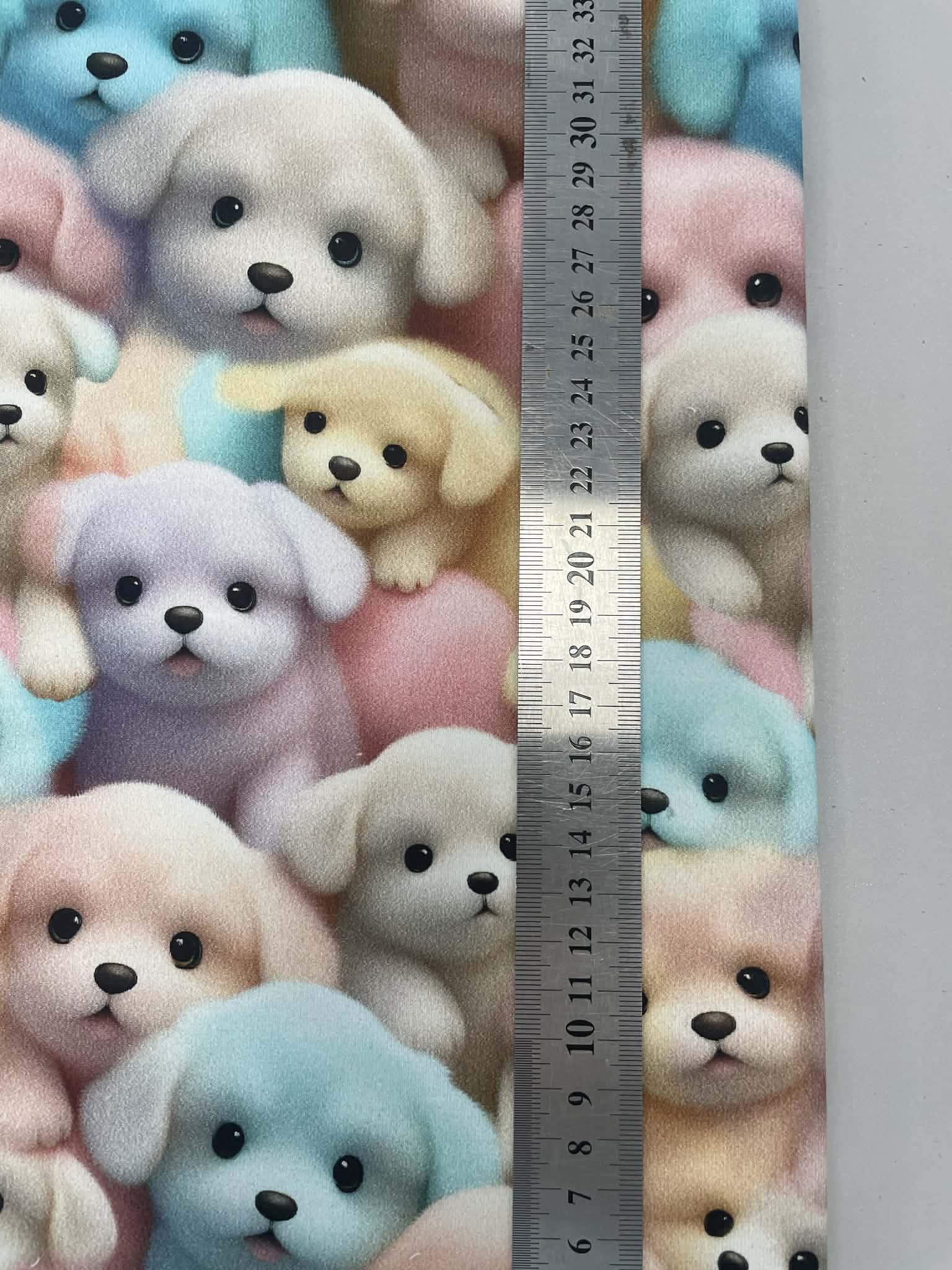 Kilpinis, skaitmeninės spaudos trikotažas Maži šuniukai-  tai skaitmenine spauda marginta kilpinė medžiaga. Spalvota skaitmeninė spauda šiuo metu yra vienas iš moderniausių spausdinimo metodų ant tekstilės. Tai ekologiška spauda, nes jos gamybai naudojami skaitmeninei spaudai skirti vandeniniai dažai. Spauda ypatingai švelni ir kokybiška – neatsiranda vaizdo įtrūkimų net trikotažą stipriai ištempus, spalvos neišblunka bei tarnauja kelerius metus. Tuo pačiu skaitmeninė spauda ypatinga savo beribe spalvine gama ir akį traukiančiomis spalvomis. Paveiksliukai pasižymi nepriekaištinga raiška ir vaizdu, dėl naudojamų aukštos kokybės dažų piešinėliai nebijo atmosferos pokyčių (karščio, drėgmės) ir juos drąsiai galima skalbti. Pats kilpinis trikotažas – šiuo metu populiariausia ir dažniausiai naudojama trikotažo rūšis. Kilpinis trikotažas yra kokybiška, viengubo mezgimo medžiaga. Dėl savo elastingumo, malonumo, purumo ir paklusnumo siuvant šis audinys ypatingai tinka siūti laisvalaikio rūbams: sportiniams kostiumams, tunikoms, palaidinukėms, džemperiams, kelnėms, tamprėms, kepurėms, movoms ir pan. Kilpinis trikotažas yra neplonas, tvirtas ir kokybiškas, todėl tinka įvairių rūbų siuvimui ne tik suaugusiems, bet ir vaikams bei kūdikiams. Iš šios medžiagos pasiūti drabužiai malonūs dėvėti, patvarūs, paprastai skalbiami ir puikiai sugeriantys bei išgarinantys drėgmę, leidžiantys kūnui kvėpuoti. Pagrindinis medvilnės privalumas – higieniškumas, todėl puikiai tinka drabužiams, kurie tiesiogiai liečiasi su žmogaus kūnu.