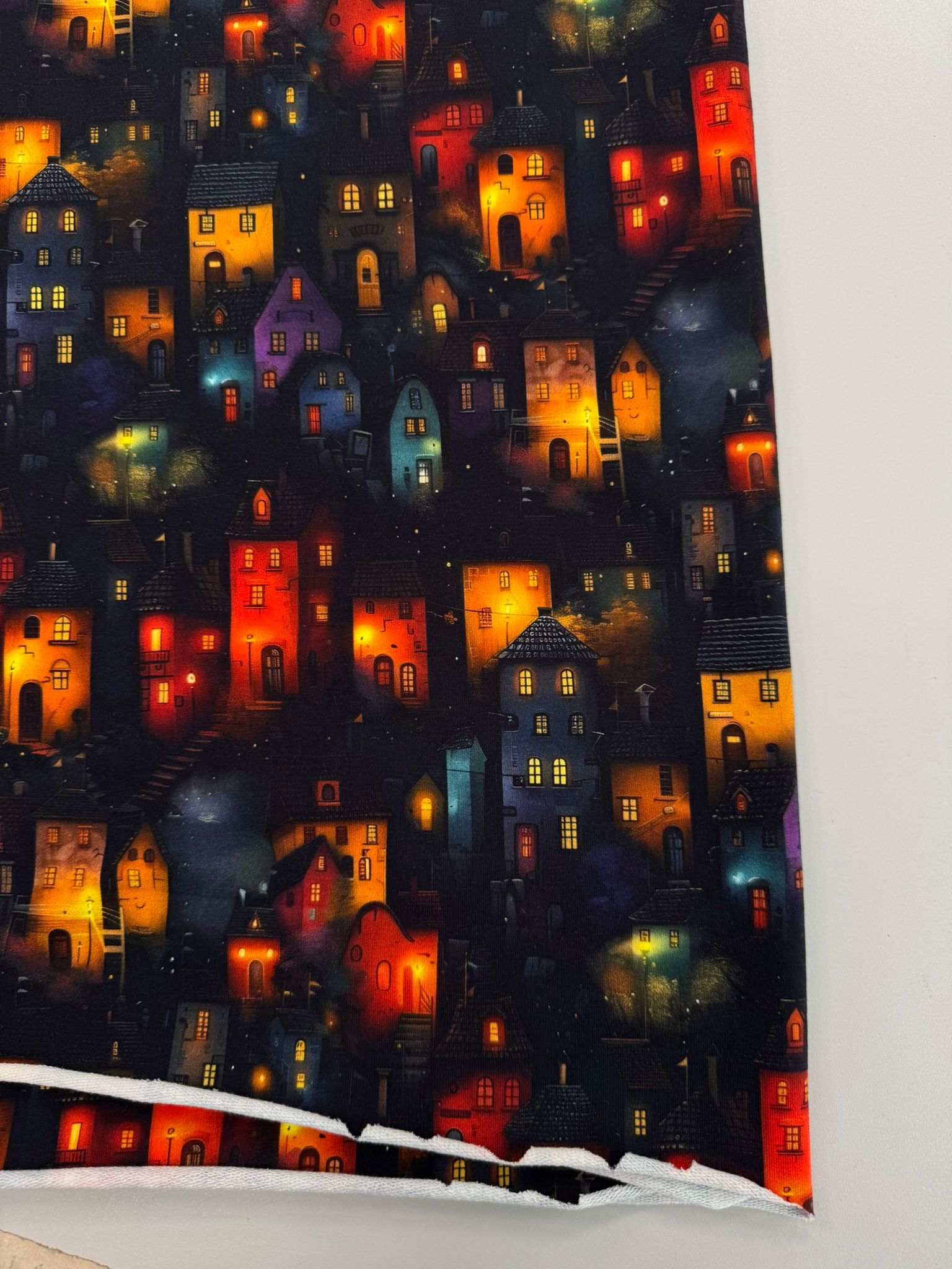 Kilpinis, skaitmeninės spaudos trikotažas Namukai –  tai skaitmenine spauda marginta kilpinė medžiaga. Spalvota skaitmeninė spauda šiuo metu yra vienas iš moderniausių spausdinimo metodų ant tekstilės. Tai ekologiška spauda, nes jos gamybai naudojami skaitmeninei spaudai skirti vandeniniai dažai. Spauda ypatingai švelni ir kokybiška – neatsiranda vaizdo įtrūkimų net trikotažą stipriai ištempus, spalvos neišblunka bei tarnauja kelerius metus. Tuo pačiu skaitmeninė spauda ypatinga savo beribe spalvine gama ir akį traukiančiomis spalvomis. Paveiksliukai pasižymi nepriekaištinga raiška ir vaizdu, dėl naudojamų aukštos kokybės dažų piešinėliai nebijo atmosferos pokyčių (karščio, drėgmės) ir juos drąsiai galima skalbti. Pats kilpinis trikotažas – šiuo metu populiariausia ir dažniausiai naudojama trikotažo rūšis. Kilpinis trikotažas yra kokybiška, viengubo mezgimo medžiaga. Dėl savo elastingumo, malonumo, purumo ir paklusnumo siuvant šis audinys ypatingai tinka siūti laisvalaikio rūbams: sportiniams kostiumams, tunikoms, palaidinukėms, džemperiams, kelnėms, tamprėms, kepurėms, movoms ir pan. Kilpinis trikotažas yra neplonas, tvirtas ir kokybiškas, todėl tinka įvairių rūbų siuvimui ne tik suaugusiems, bet ir vaikams bei kūdikiams. Iš šios medžiagos pasiūti drabužiai malonūs dėvėti, patvarūs, paprastai skalbiami ir puikiai sugeriantys bei išgarinantys drėgmę, leidžiantys kūnui kvėpuoti. Pagrindinis medvilnės privalumas – higieniškumas, todėl puikiai tinka drabužiams, kurie tiesiogiai liečiasi su žmogaus kūnu.