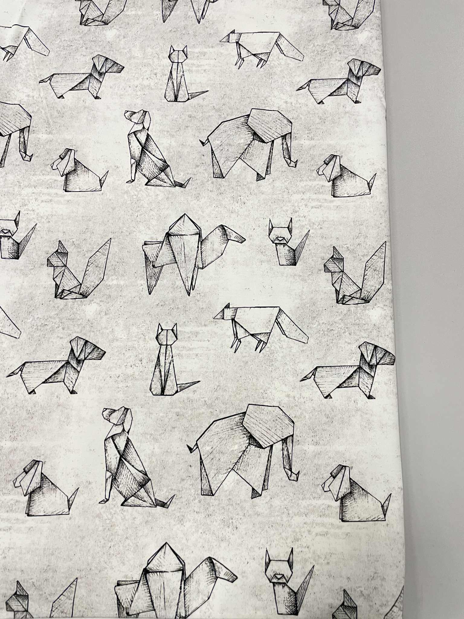 Kilpinis, skaitmeninės spaudos trikotažas Origami – tai skaitmenine spauda marginta kilpinė medžiaga. Spalvota skaitmeninė spauda šiuo metu yra vienas iš moderniausių spausdinimo metodų ant tekstilės. Tai ekologiška spauda, nes jos gamybai naudojami skaitmeninei spaudai skirti vandeniniai dažai. Spauda ypatingai švelni ir kokybiška – neatsiranda vaizdo įtrūkimų net trikotažą stipriai ištempus, spalvos neišblunka bei tarnauja kelerius metus. Tuo pačiu skaitmeninė spauda ypatinga savo beribe spalvine gama ir akį traukiančiomis spalvomis. Paveiksliukai pasižymi nepriekaištinga raiška ir vaizdu, dėl naudojamų aukštos kokybės dažų piešinėliai nebijo atmosferos pokyčių (karščio, drėgmės) ir juos drąsiai galima skalbti. Pats kilpinis trikotažas – šiuo metu populiariausia ir dažniausiai naudojama trikotažo rūšis. Kilpinis trikotažas yra kokybiška, viengubo mezgimo medžiaga. Dėl savo elastingumo, malonumo, purumo ir paklusnumo siuvant šis audinys ypatingai tinka siūti laisvalaikio rūbams: sportiniams kostiumams, tunikoms, palaidinukėms, džemperiams, kelnėms, tamprėms, kepurėms, movoms ir pan. Kilpinis trikotažas yra neplonas, tvirtas ir kokybiškas, todėl tinka įvairių rūbų siuvimui ne tik suaugusiems, bet ir vaikams bei kūdikiams. Iš šios medžiagos pasiūti drabužiai malonūs dėvėti, patvarūs, paprastai skalbiami ir puikiai sugeriantys bei išgarinantys drėgmę, leidžiantys kūnui kvėpuoti. Pagrindinis medvilnės privalumas – higieniškumas, todėl puikiai tinka drabužiams, kurie tiesiogiai liečiasi su žmogaus kūnu.