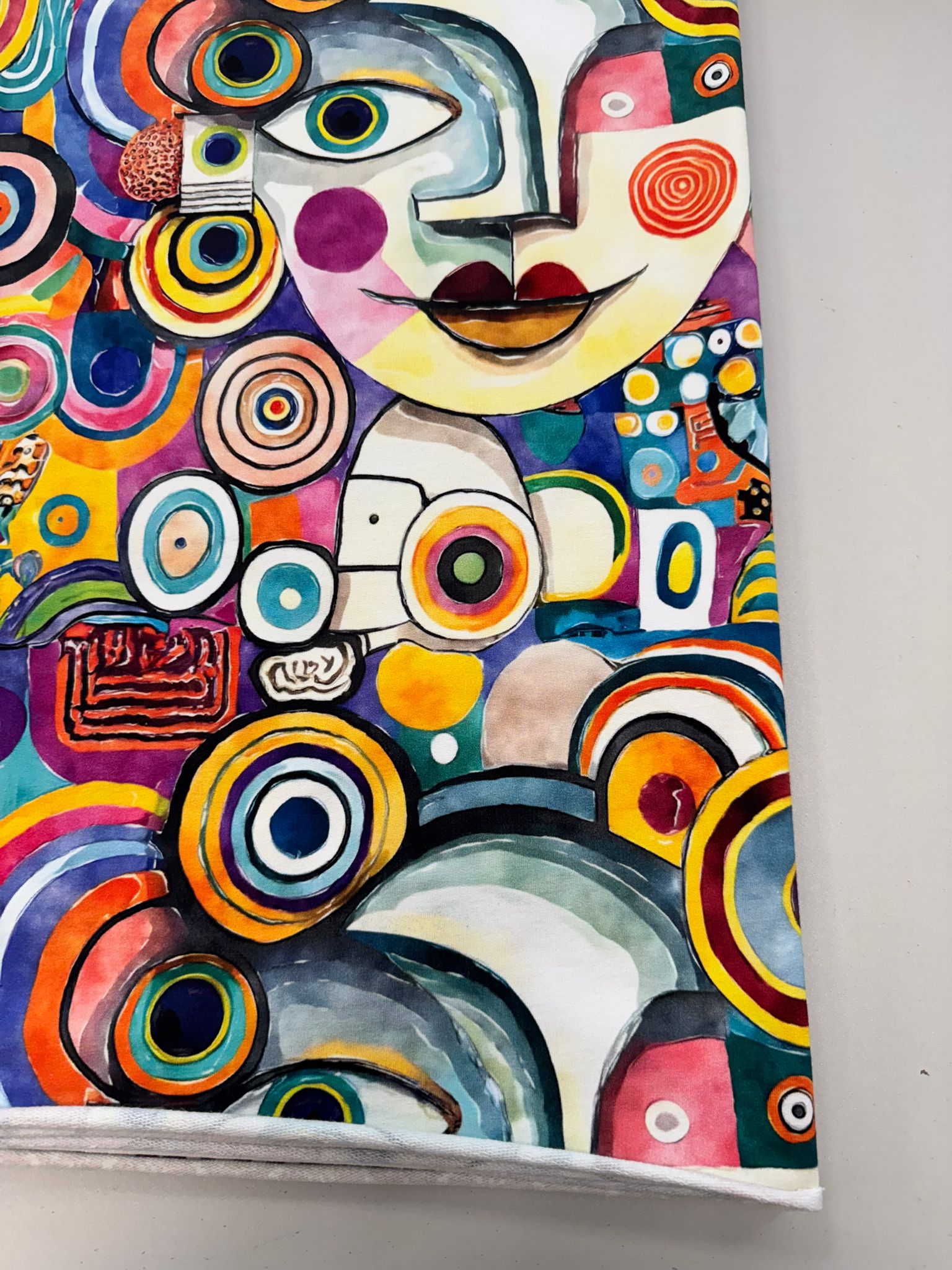 Kilpinis, skaitmeninės spaudos trikotažas Pikaso – tai skaitmenine spauda marginta kilpinė medžiaga. Spalvota skaitmeninė spauda šiuo metu yra vienas iš moderniausių spausdinimo metodų ant tekstilės. Tai ekologiška spauda, nes jos gamybai naudojami skaitmeninei spaudai skirti vandeniniai dažai. Spauda ypatingai švelni ir kokybiška – neatsiranda vaizdo įtrūkimų net trikotažą stipriai ištempus, spalvos neišblunka bei tarnauja kelerius metus. Tuo pačiu skaitmeninė spauda ypatinga savo beribe spalvine gama ir akį traukiančiomis spalvomis. Paveiksliukai pasižymi nepriekaištinga raiška ir vaizdu, dėl naudojamų aukštos kokybės dažų piešinėliai nebijo atmosferos pokyčių (karščio, drėgmės) ir juos drąsiai galima skalbti. Pats kilpinis trikotažas – šiuo metu populiariausia ir dažniausiai naudojama trikotažo rūšis. Kilpinis trikotažas yra kokybiška, viengubo mezgimo medžiaga. Dėl savo elastingumo, malonumo, purumo ir paklusnumo siuvant šis audinys ypatingai tinka siūti laisvalaikio rūbams: sportiniams kostiumams, tunikoms, palaidinukėms, džemperiams, kelnėms, tamprėms, kepurėms, movoms ir pan. Kilpinis trikotažas yra neplonas, tvirtas ir kokybiškas, todėl tinka įvairių rūbų siuvimui ne tik suaugusiems, bet ir vaikams bei kūdikiams. Iš šios medžiagos pasiūti drabužiai malonūs dėvėti, patvarūs, paprastai skalbiami ir puikiai sugeriantys bei išgarinantys drėgmę, leidžiantys kūnui kvėpuoti. Pagrindinis medvilnės privalumas – higieniškumas, todėl puikiai tinka drabužiams, kurie tiesiogiai liečiasi su žmogaus kūnu.