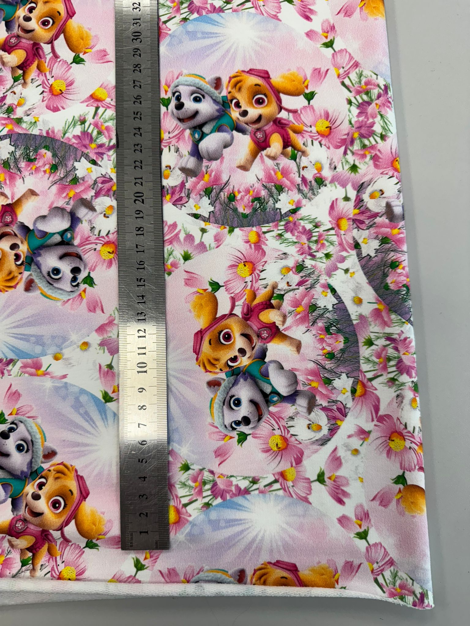 Kilpinis, skaitmeninės spaudos trikotažas Sky gėlių pievoje –  tai skaitmenine spauda marginta kilpinė medžiaga. Spalvota skaitmeninė spauda šiuo metu yra vienas iš moderniausių spausdinimo metodų ant tekstilės. Tai ekologiška spauda, nes jos gamybai naudojami skaitmeninei spaudai skirti vandeniniai dažai. Spauda ypatingai švelni ir kokybiška – neatsiranda vaizdo įtrūkimų net trikotažą stipriai ištempus, spalvos neišblunka bei tarnauja kelerius metus. Tuo pačiu skaitmeninė spauda ypatinga savo beribe spalvine gama ir akį traukiančiomis spalvomis. Paveiksliukai pasižymi nepriekaištinga raiška ir vaizdu, dėl naudojamų aukštos kokybės dažų piešinėliai nebijo atmosferos pokyčių (karščio, drėgmės) ir juos drąsiai galima skalbti. Pats kilpinis trikotažas – šiuo metu populiariausia ir dažniausiai naudojama trikotažo rūšis. Kilpinis trikotažas yra kokybiška, viengubo mezgimo medžiaga. Dėl savo elastingumo, malonumo, purumo ir paklusnumo siuvant šis audinys ypatingai tinka siūti laisvalaikio rūbams: sportiniams kostiumams, tunikoms, palaidinukėms, džemperiams, kelnėms, tamprėms, kepurėms, movoms ir pan. Kilpinis trikotažas yra neplonas, tvirtas ir kokybiškas, todėl tinka įvairių rūbų siuvimui ne tik suaugusiems, bet ir vaikams bei kūdikiams. Iš šios medžiagos pasiūti drabužiai malonūs dėvėti, patvarūs, paprastai skalbiami ir puikiai sugeriantys bei išgarinantys drėgmę, leidžiantys kūnui kvėpuoti. Pagrindinis medvilnės privalumas – higieniškumas, todėl puikiai tinka drabužiams, kurie tiesiogiai liečiasi su žmogaus kūnu.