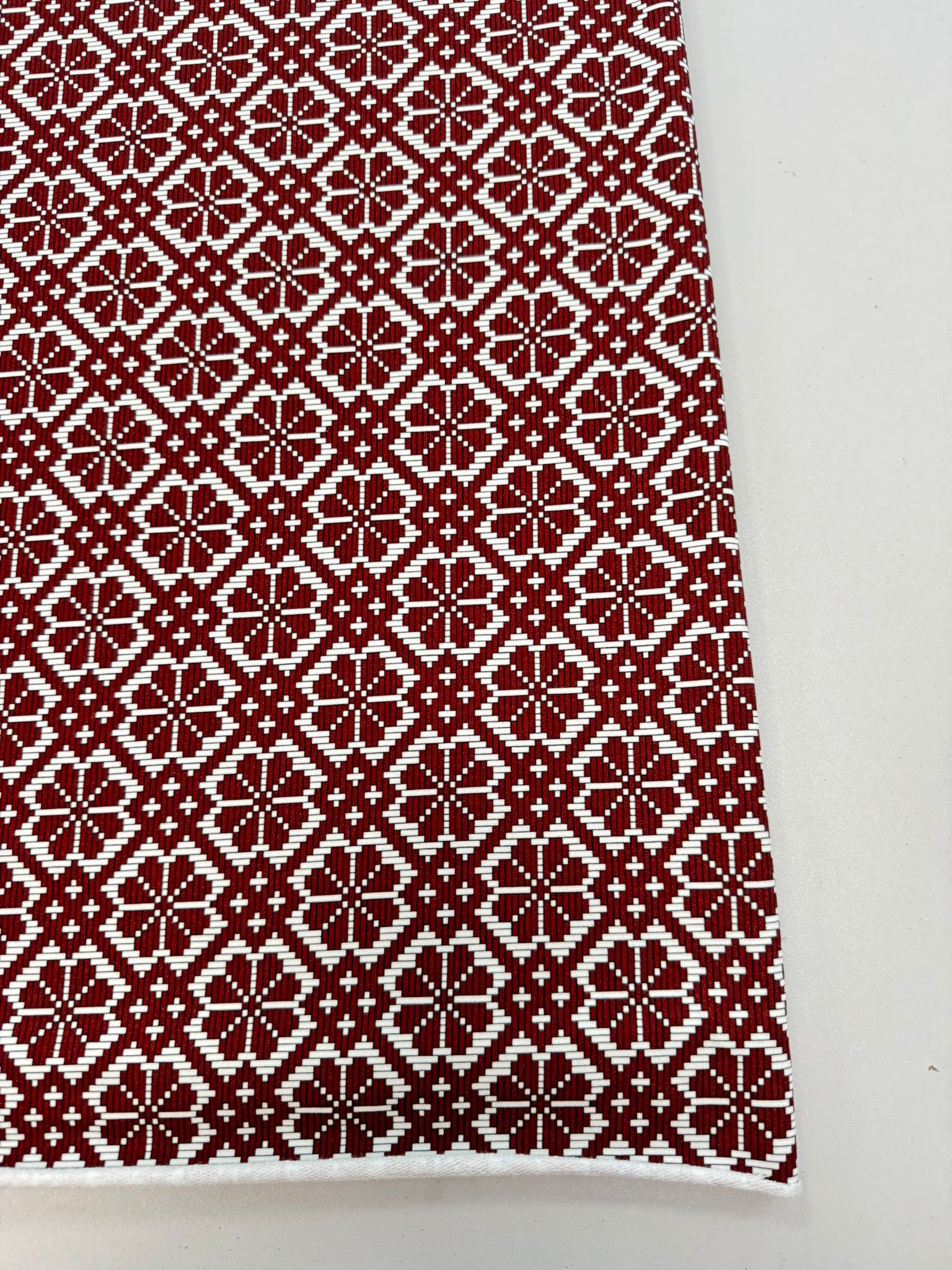 Kilpinis, skaitmeninės spaudos trikotažas Tautinis – tai skaitmenine spauda marginta kilpinė medžiaga. Spalvota skaitmeninė spauda šiuo metu yra vienas iš moderniausių spausdinimo metodų ant tekstilės. Tai ekologiška spauda, nes jos gamybai naudojami skaitmeninei spaudai skirti vandeniniai dažai. Spauda ypatingai švelni ir kokybiška – neatsiranda vaizdo įtrūkimų net trikotažą stipriai ištempus, spalvos neišblunka bei tarnauja kelerius metus. Tuo pačiu skaitmeninė spauda ypatinga savo beribe spalvine gama ir akį traukiančiomis spalvomis. Paveiksliukai pasižymi nepriekaištinga raiška ir vaizdu, dėl naudojamų aukštos kokybės dažų piešinėliai nebijo atmosferos pokyčių (karščio, drėgmės) ir juos drąsiai galima skalbti. Pats kilpinis trikotažas – šiuo metu populiariausia ir dažniausiai naudojama trikotažo rūšis. Kilpinis trikotažas yra kokybiška, viengubo mezgimo medžiaga. Dėl savo elastingumo, malonumo, purumo ir paklusnumo siuvant šis audinys ypatingai tinka siūti laisvalaikio rūbams: sportiniams kostiumams, tunikoms, palaidinukėms, džemperiams, kelnėms, tamprėms, kepurėms, movoms ir pan. Kilpinis trikotažas yra neplonas, tvirtas ir kokybiškas, todėl tinka įvairių rūbų siuvimui ne tik suaugusiems, bet ir vaikams bei kūdikiams. Iš šios medžiagos pasiūti drabužiai malonūs dėvėti, patvarūs, paprastai skalbiami ir puikiai sugeriantys bei išgarinantys drėgmę, leidžiantys kūnui kvėpuoti. Pagrindinis medvilnės privalumas – higieniškumas, todėl puikiai tinka drabužiams, kurie tiesiogiai liečiasi su žmogaus kūnu.