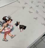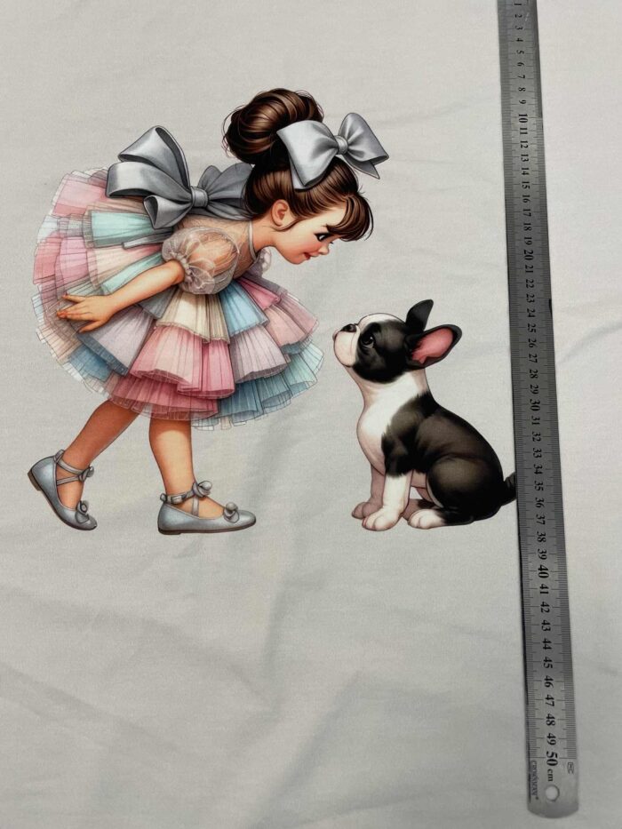 Kilpinis, skaitmeninės spaudos trikotažo fragmentas, Balerina su šuniuku
