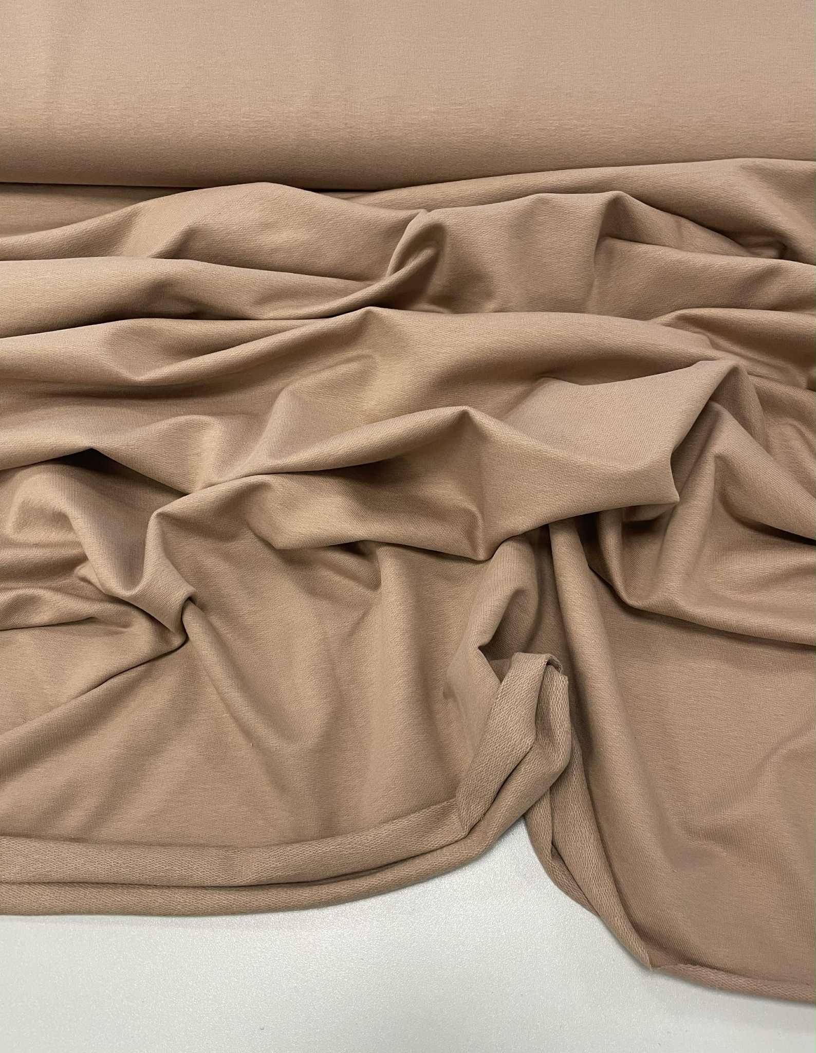 Kilpinis trikotažas Dark sandbay, 250 g/m2 . Kilpinis trikotažas – šiuo metu populiariausia ir dažniausiai naudojama trikotažo rūšis. Kilpinis trikotažas yra kokybiška, viengubo mezgimo medžiaga. Dėl savo elastingumo, malonumo, purumo ir paklusnumo siuvant šis audinys ypatingai tinka siūti laisvalaikio rūbams: sportinimas kostiumams, tunikoms, palaidinukėms, džemperiams, kelnėms, tamprėms, kepurėms, movoms ir pan. Kilpinis trikotažas yra neplonas, tvirtas, sertifikuotas ir kokybiškas, todėl tinka įvairių rūbų siuvimui ne tik suaugusiems, bet ir vaikams bei kūdikiams. Iš šios medžiagos pasiūti drabužiai malonūs dėvėti, patvarūs, paprastai skalbiami ir puikiai sugeriantys bei išgarinantys drėgmę, leidžiantys kūnui kvėpuoti. Pagrindinis medvilnės privalumas – higieniškumas, todėl puikiai tinka drabužiams, kurie tiesiogiai liečiasi su žmogaus kūnu. Medžiaga labai praktiška, nereikalauja ypatingos priežiūros. Net ir dažnai skalbiant, bet tinkamai naudojant ir prižiūrint ši medžiaga ilgai išlaikys pradinę spalvą, formą ir išliks kokybiška. Nors medvilnė yra tvirta ir atspari skalbimui, rekomenduojame gręžti kuo mažiausiomis apsukomis, kad nesusimestų sunkiai išlyginamų raukšlių.