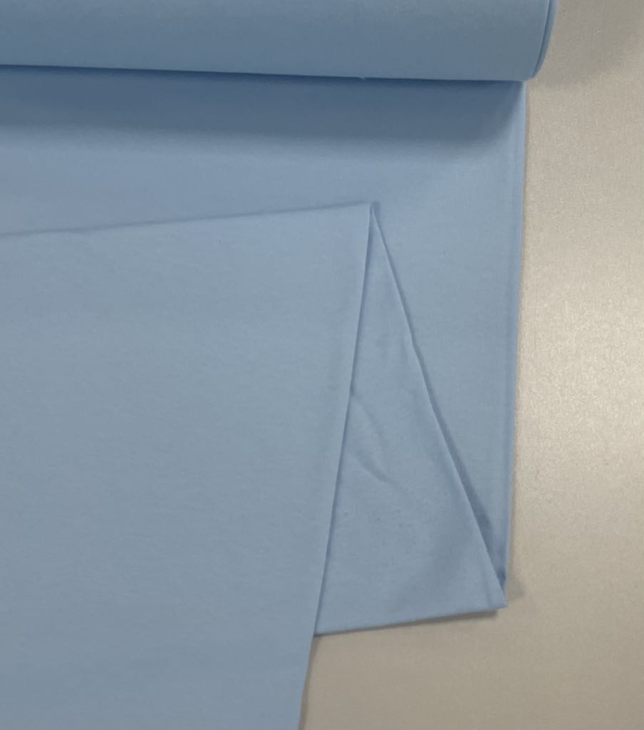 Kilpinis trikotažas Žydras, 270 g/m2 . Kilpinis trikotažas – šiuo metu populiariausia ir dažniausiai naudojama trikotažo rūšis. Kilpinis trikotažas yra kokybiška, viengubo mezgimo medžiaga. Dėl savo elastingumo, malonumo, purumo ir paklusnumo siuvant šis audinys ypatingai tinka siūti laisvalaikio rūbams: sportinimas kostiumams, tunikoms, palaidinukėms, džemperiams, kelnėms, tamprėms, kepurėms, movoms ir pan. Kilpinis trikotažas yra neplonas, tvirtas, sertifikuotas ir kokybiškas, todėl tinka įvairių rūbų siuvimui ne tik suaugusiems, bet ir vaikams bei kūdikiams. Iš šios medžiagos pasiūti drabužiai malonūs dėvėti, patvarūs, paprastai skalbiami ir puikiai sugeriantys bei išgarinantys drėgmę, leidžiantys kūnui kvėpuoti. Pagrindinis medvilnės privalumas – higieniškumas, todėl puikiai tinka drabužiams, kurie tiesiogiai liečiasi su žmogaus kūnu. Medžiaga labai praktiška, nereikalauja ypatingos priežiūros. Net ir dažnai skalbiant, bet tinkamai naudojant ir prižiūrint ši medžiaga ilgai išlaikys pradinę spalvą, formą ir išliks kokybiška. Nors medvilnė yra tvirta ir atspari skalbimui, rekomenduojame gręžti kuo mažiausiomis apsukomis, kad nesusimestų sunkiai išlyginamų raukšlių. Kilpinis trikotažas Mėtinė nesielektrina.