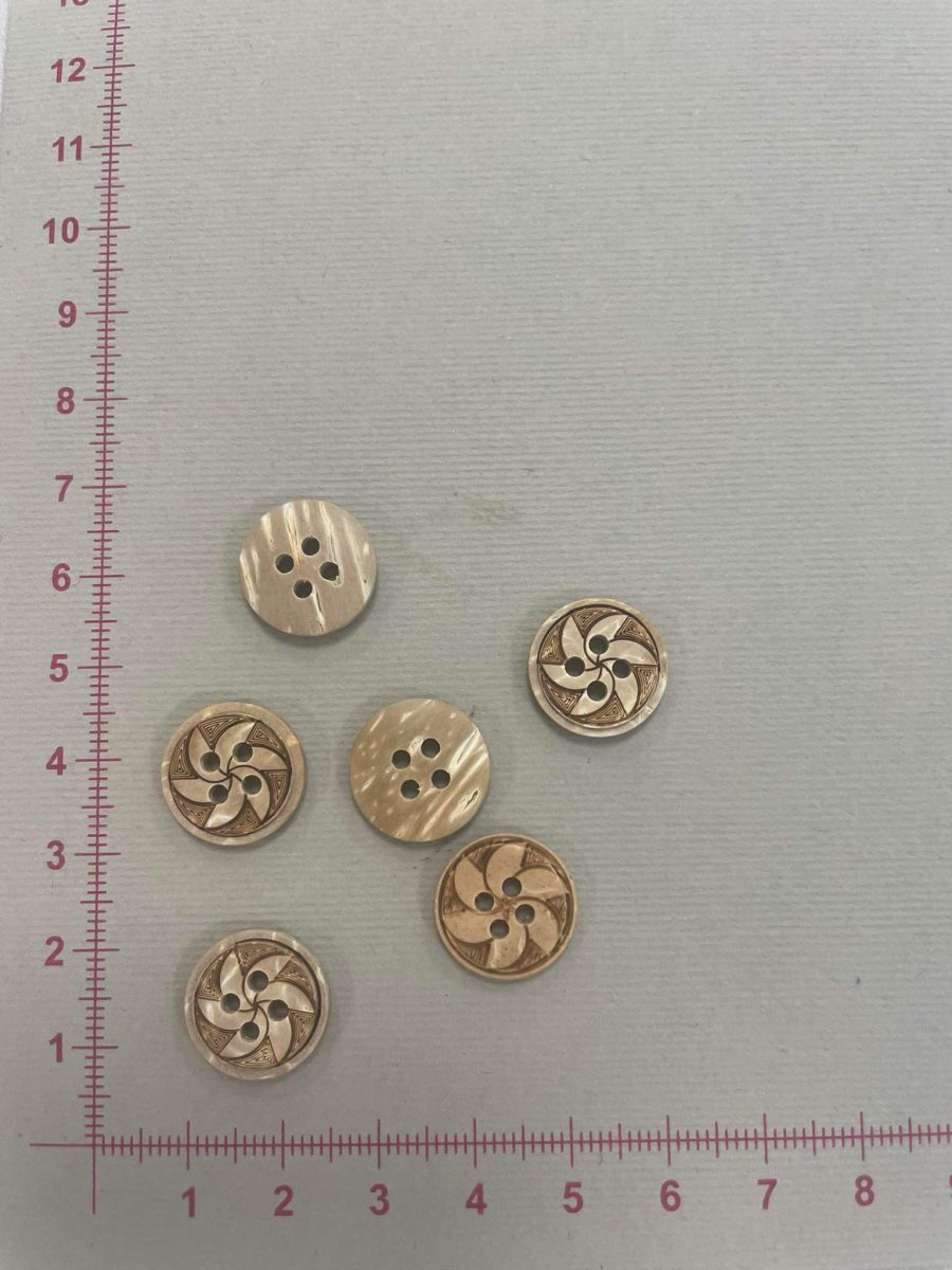 Medinė saga su ornamentais. Saga – tai viena iš pagrindinių rūbo užsegimo priemonių. Šiais laikas sagos yra labai svarbi detalė mūsų drabužiuose, nes dažniai jos jau atlieka ne tik užsegimo fuknkciją, bet tampa ir išskirtiniu akcentu, padailina rūbą, suteikia jam išskirtinumo, individualumo ir žaismingumo. Išskirtinė, arba net ir paprasta saga suteikia kiekvienam rūbui savą charakterį ir stilių. Sagos būna įvairių įvairiausios: skiriasi sagų dydžiai, formos, spalvos. Sagos būna išskirtinai vaikiškos, skirtos tik suaugusiems arba universalios, tinkančios tiek mažiesiems nenaudėliams, tiek paaugliams, vyrams ir moterims. Sagų spalvų paletė pati įvairiausia: nuo natūralių medinių iki vienspalvių ar margų, su unikaliais ir išskirtiniais piešinėliais ar raižiniais. Dažniausiai sagų spalva derinama prie siuvamo ar mezgamo rūbo. Paprastos plastikinės sagos yra patvarios ir labai praktiškos. Medinės sagos rūbui ar mezginiui suteikia išskirtinumo ir natūralumo pojūtį. Kokosinės sagos yra puikus variantas ieškantiems lengvų, įdomių sagų. Medinė saga su ornamentais – tai natūralaus kokoso medžio saga, natūraliai nulakuota ir išdeginta įvairiais ornamentais, prisiuvimui yra 4 skylutės, jos skersmuo – 12 mm. Saga universali, tinkama tiek vaikiškiems, tiek suaugusiųjų rūbams dekoruoti.