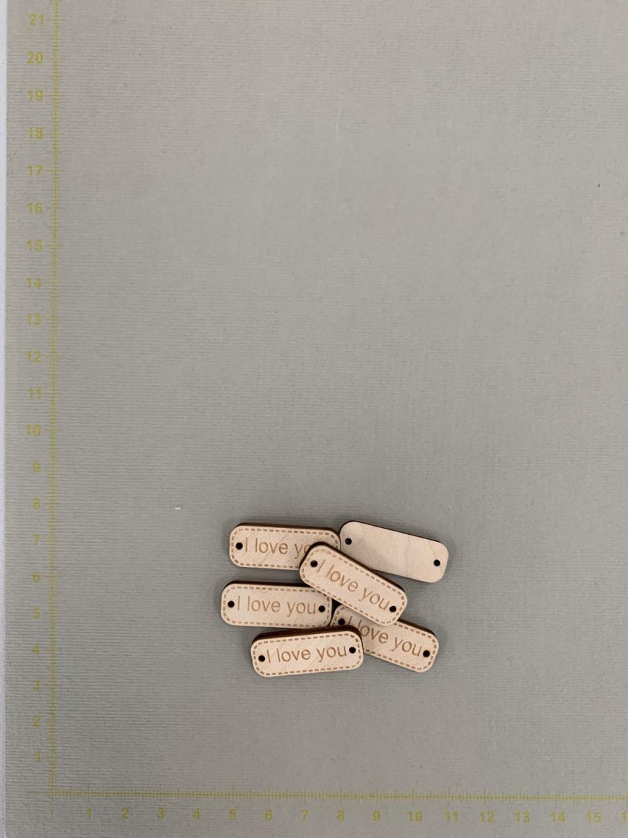 Medinė etiketė I love you, vidutinė – tai kokybiška, prabangi, ir daug teigiamų emocijų skleidžianti medinė etiketė. Medinės etiketės dažniausiai naudojamos siuvimo pramonėje, norint pasiūtam rūbui suteikti orginalumo, išskirtinumo. Galima šias etiketes naudoti drabužio ar kito gaminio viduje, mažiau matomoje vietoje, tačiau jas puikiai galite tvirtinti ir išorinėje rūbo vietoje. Ši etiketė yra pagaminta iš natūralios medienos, užrašas išdegintas, todėl suteiks Jūsų pagamintam rūbui natūralumo, tuo pačiu tai bus įrodymas, kad rūbas tikrai pagamintas rankomis. Etiketė ypatinga tuo, kad yra labai lengva, pagaminta kokybiškai, neblunka, atspari skalbimui, yra ilgaamžė. Šios etiketės pritvirtinimas labai paprastas ir patogus: etiketės kraštuose yra nedidelės skylutės, jas puikiai galima prisiūti paprasta siuvimo adata. Etiketė lengva, todėl tikrai nesvers ir netemps net ir pačio lengviausio audinio. Užrašas I love you (angl.) reiškia “Aš tave myliu”. Etiketė skirta kiekvienos siuvėjos ir rūbo dėvėtojo pasididžiavimui!