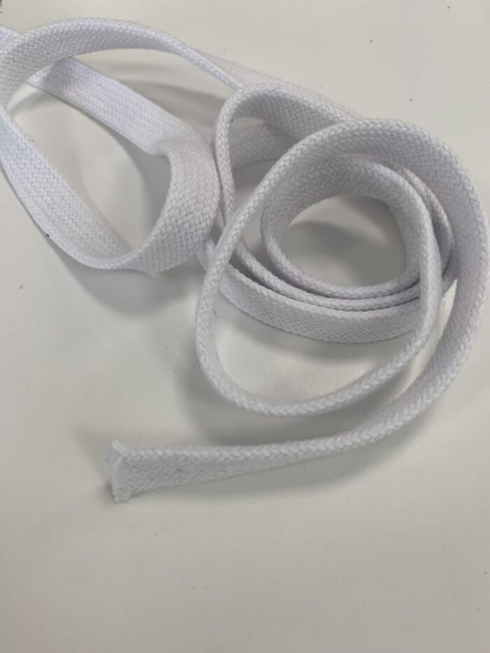 Medvilninė plokščia virvelė Balta dažniausiai yra naudojama siuvimui ir rankdarbiams: bižuterijos gamybai, papuošalų gamybai, pynimui, rūbų dekoravimui ir pan. Virvelė yra pinta šešiomis vijomis ir su užpildu, tvirta, spalvota, matinė, nesitampanti. Šios virvelės dažniai naudojamos laisvalaikio rūbų dekoravimui ir apdailai: sijonų, kelnių, šortų, bridžų liemeniui sutvirtinti, bliuzonų, liemenių, megztukų apačiai sutraukti bei gobtuvui ar apykaklei reguliuoti. Įvairios medvilninės virvelės naudojamos ne tik siuvimui ir rankdarbiams – jos dažniausiai yra labai plataus panaudojimo – virvelės atlieka ir daug pagalbinių funkcijų buityje. Pavyzdžiui, tokią medvilninę virvelę galima naudoti ir rūbų džiovimui, ir ūkio darbuose, ir bet kokiam sutvirtinimui ar surišimui, nes virvelė nors ir yra minkšta, bet yra labai tvirta ir neišsitampanti. Virvelės yra ypatingai tvirtos, įvairių ryškių ir pastelinių spalvų., daug virvelių spalvų atitinka mūsų turimo trikotažo spalvas. Virvelės storis – 5 mm, ji pagaminta iš 6-ių vijų, medvilninė. Šias virveles lengva naudoti, nes jos yra minkšos ir lanksčios.