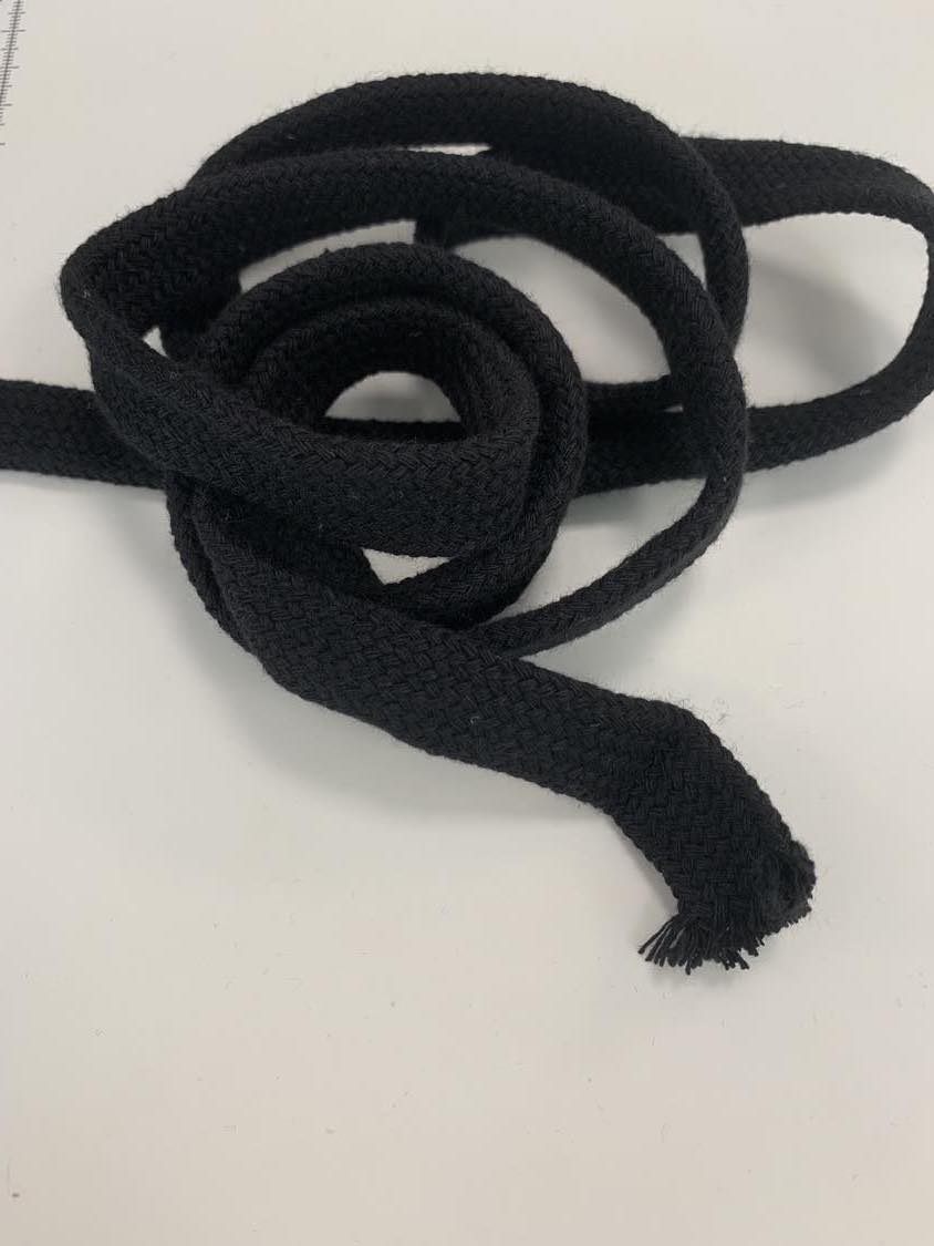 Medvilninė plokščia virvelė Juoda dažniausiai yra naudojama siuvimui ir rankdarbiams: bižuterijos gamybai, papuošalų gamybai, pynimui, rūbų dekoravimui ir pan. Virvelė yra pinta šešiomis vijomis ir su užpildu, tvirta, spalvota, matinė, nesitampanti. Šios virvelės dažniai naudojamos laisvalaikio rūbų dekoravimui ir apdailai: sijonų, kelnių, šortų, bridžų liemeniui sutvirtinti, bliuzonų, liemenių, megztukų apačiai sutraukti bei gobtuvui ar apykaklei reguliuoti. Įvairios medvilninės virvelės naudojamos ne tik siuvimui ir rankdarbiams – jos dažniausiai yra labai plataus panaudojimo – virvelės atlieka ir daug pagalbinių funkcijų buityje. Pavyzdžiui, tokią medvilninę virvelę galima naudoti ir rūbų džiovimui, ir ūkio darbuose, ir bet kokiam sutvirtinimui ar surišimui, nes virvelė nors ir yra minkšta, bet yra labai tvirta ir neišsitampanti. Virvelės yra ypatingai tvirtos, įvairių ryškių ir pastelinių spalvų., daug virvelių spalvų atitinka mūsų turimo trikotažo spalvas. Virvelės storis – 5 mm, ji pagaminta iš 6-ių vijų, medvilninė. Šias virveles lengva naudoti, nes jos yra minkšos ir lanksčios.