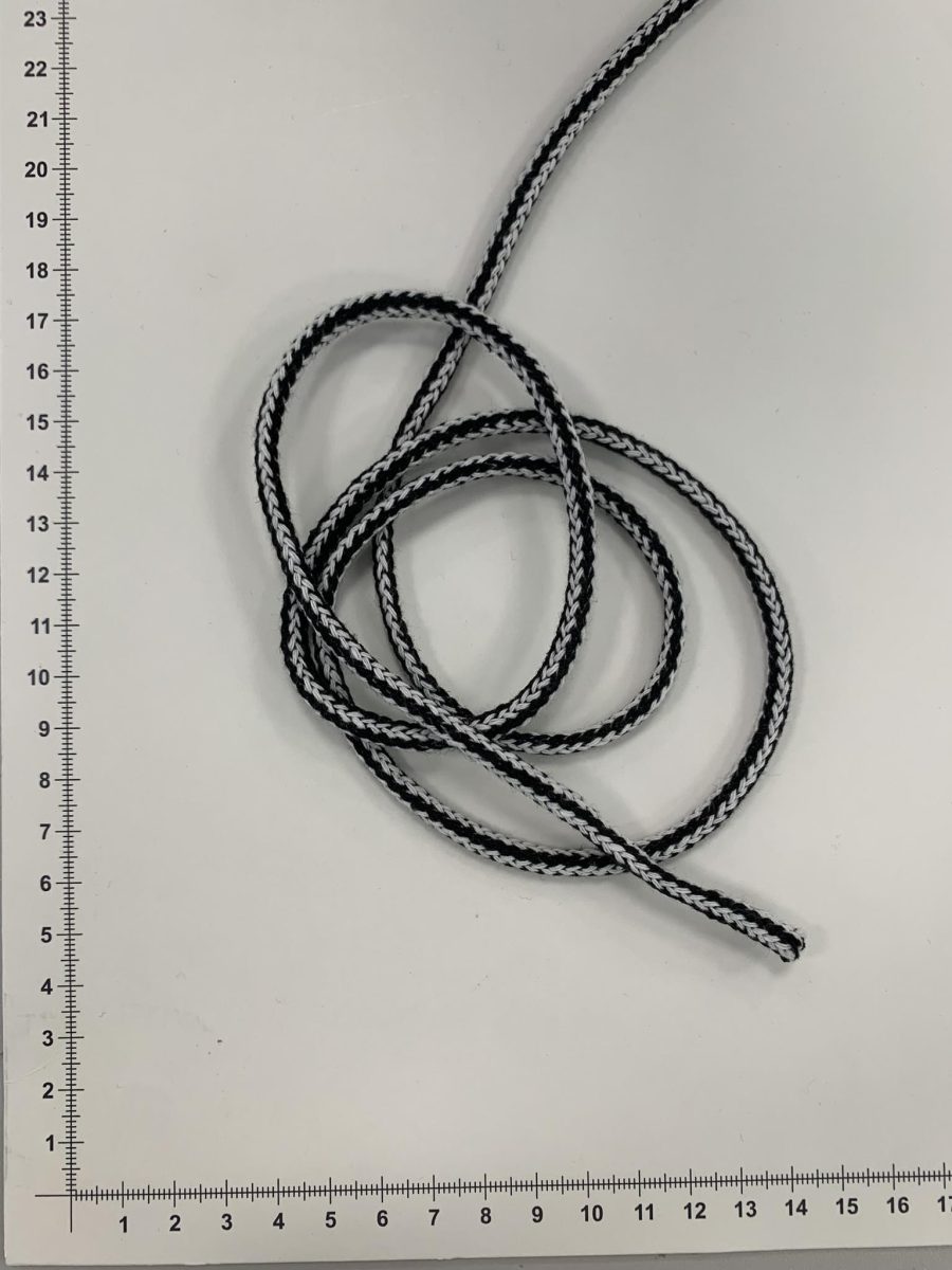 Medvilninė virvelė Juoda/ Balta dažniausiai yra naudojama siuvimui ir rankdarbiams: bižuterijos gamybai, papuošalų gamybai, pynimui, rūbų dekoravimui ir pan. Virvelė yra pinta šešiomis vijomis ir su užpildu, tvirta, spalvota, matinė, nesitampanti. Šios virvelės dažniai naudojamos laisvalaikio rūbų dekoravimui ir apdailai: sijonų, kelnių, šortų, bridžų liemeniui sutvirtinti, bliuzonų, liemenių, megztukų apačiai sutraukti bei gobtuvui ar apykaklei reguliuoti. Įvairios medvilninės virvelės naudojamos ne tik siuvimui ir rankdarbiams – jos dažniausiai yra labai plataus panaudojimo – virvelės atlieka ir daug pagalbinių funkcijų buityje. Pavyzdžiui, tokią medvilninę virvelę galima naudoti ir rūbų džiovimui, ir ūkio darbuose, ir bet kokiam sutvirtinimui ar surišimui, nes virvelė nors ir yra minkšta, bet yra labai tvirta ir neišsitampanti. Virvelės yra ypatingai tvirtos, įvairių ryškių ir pastelinių spalvų., daug virvelių spalvų atitinka mūsų turimo trikotažo spalvas. Virvelės storis – 5 mm, ji pagaminta iš 6-ių vijų, medvilninė. Šias virveles lengva naudoti, nes jos yra minkšos ir lanksčios.