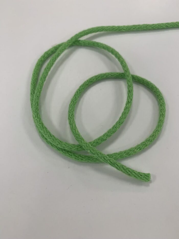 Medvilninė virvelė Žalia dažniausiai yra naudojama siuvimui ir rankdarbiams: bižuterijos gamybai, papuošalų gamybai, pynimui, rūbų dekoravimui ir pan. Virvelė yra pinta šešiomis vijomis ir su užpildu, tvirta, spalvota, matinė, nesitampanti. Šios virvelės dažniai naudojamos laisvalaikio rūbų dekoravimui ir apdailai: sijonų, kelnių, šortų, bridžų liemeniui sutvirtinti, bliuzonų, liemenių, megztukų apačiai sutraukti bei gobtuvui ar apykaklei reguliuoti. Įvairios medvilninės virvelės naudojamos ne tik siuvimui ir rankdarbiams – jos dažniausiai yra labai plataus panaudojimo – virvelės atlieka ir daug pagalbinių funkcijų buityje. Pavyzdžiui, tokią medvilninę virvelę galima naudoti ir rūbų džiovimui, ir ūkio darbuose, ir bet kokiam sutvirtinimui ar surišimui, nes virvelė nors ir yra minkšta, bet yra labai tvirta ir neišsitampanti. Virvelės yra ypatingai tvirtos, įvairių ryškių ir pastelinių spalvų., daug virvelių spalvų atitinka mūsų turimo trikotažo spalvas. Virvelės storis – 5 mm, ji pagaminta iš 6-ių vijų, medvilninė. Šias virveles lengva naudoti, nes jos yra minkšos ir lanksčios.