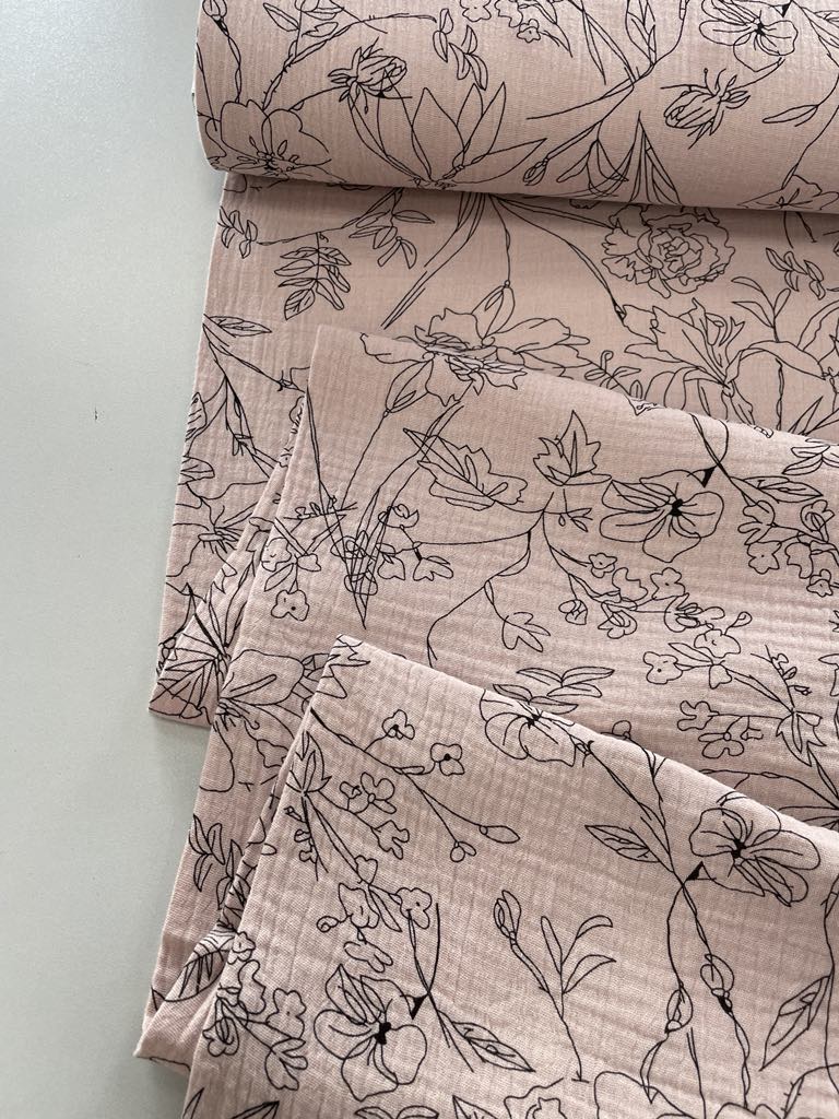 Medvilninis double gauze muslinas Gėlynas pelenų rožė