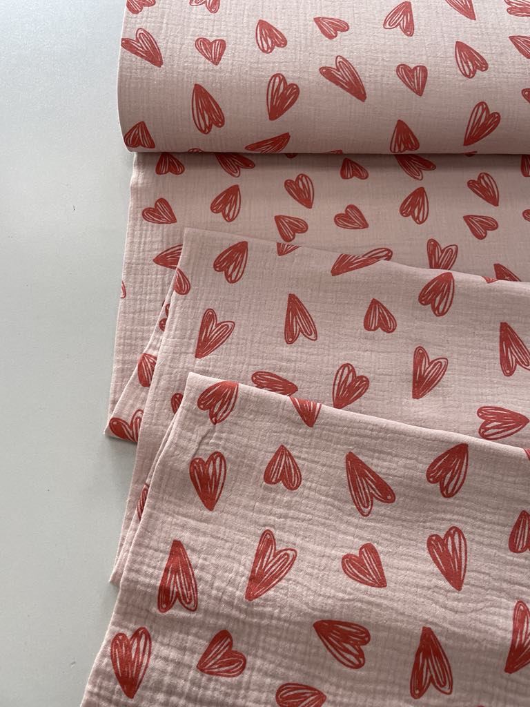 Medvilninis double gauze muslinas Širdelės pelenų rožė
