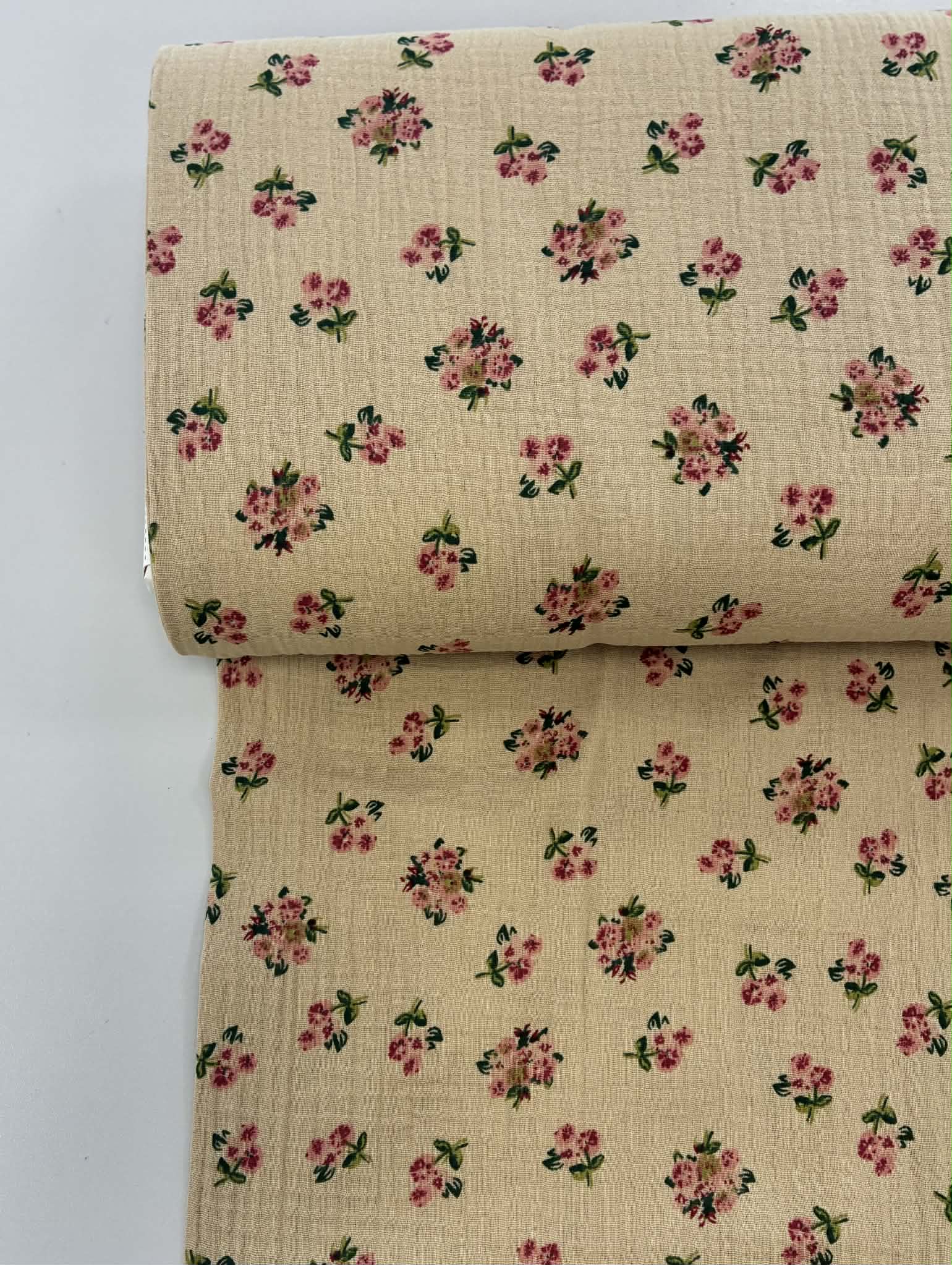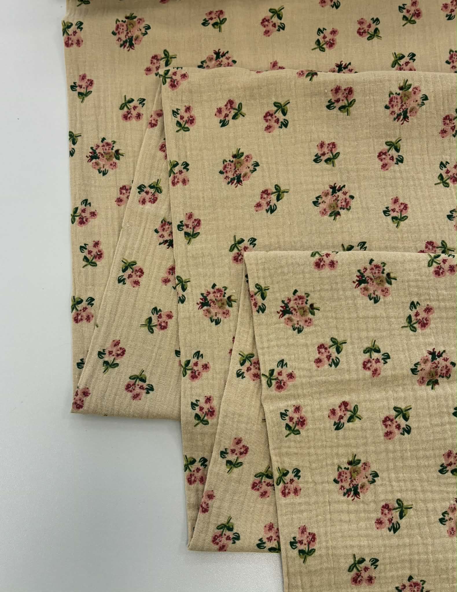 Medvilninis double gauze muslinas Smėlinės rožytės