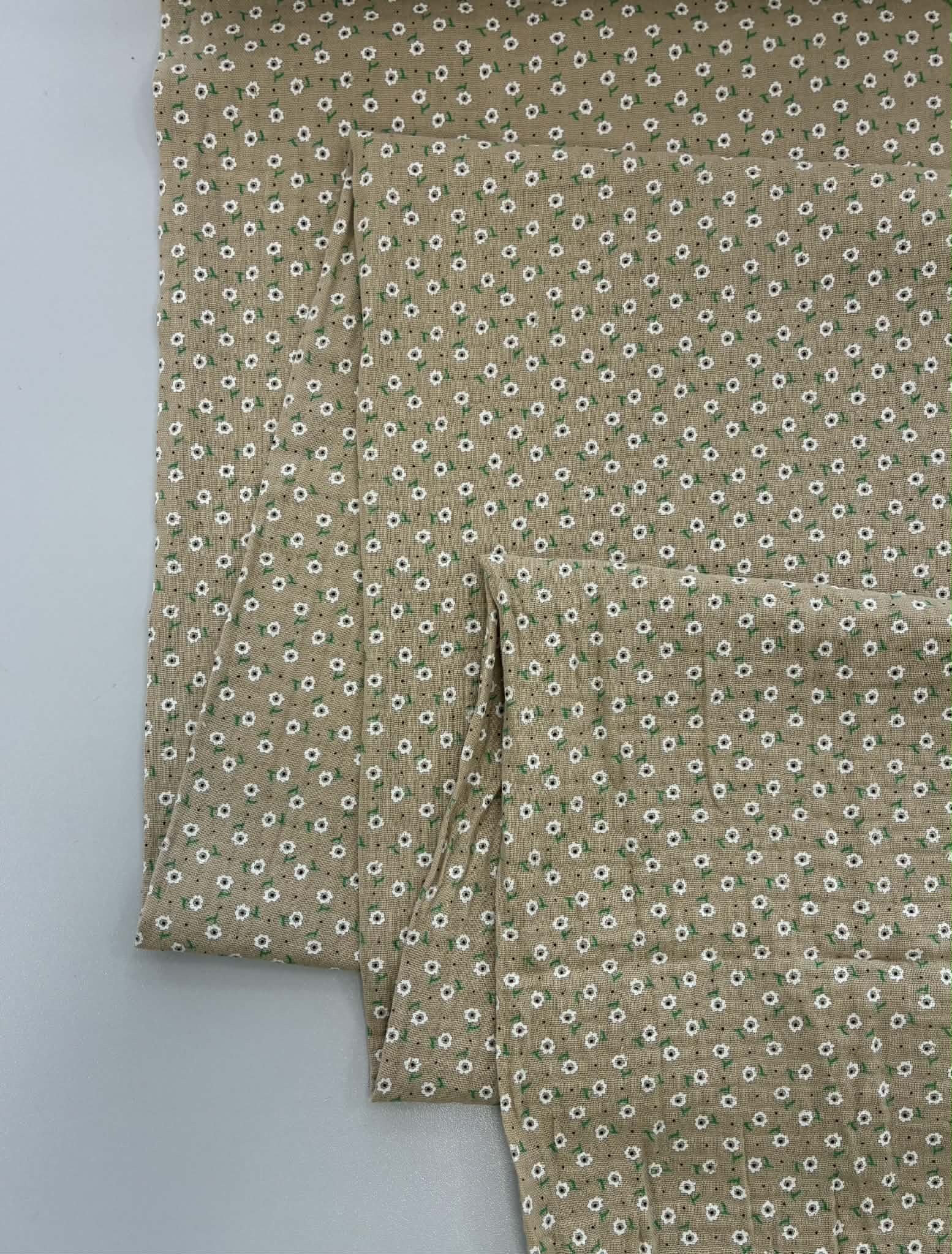 Medvilninis double gauze muslinas Smėliniai gėlių žiedai – muslinas tai reto audimo medžiaga, kurios abi pusės gali būti naudojamos kaip gerosios. Medvilnė puikiai sugeria drėgmę, nesielektrina, todėl yra tinkama drabužiams, skiautiniams, namų tekstilei, patalynei, užuolaidoms, rankdarbiams ir kt. Audinys neturi elastano, nesitampo. Tai reikėtų įvertinti prieš apskaičiuojant, kiek audinio Jums reikės. Šis audinys yra tvirtas, kokybiškas, todėl tinka įvairių rūbų siuvimui ne tik suaugusiems, bet ir vaikams. Iš šios medžiagos pasiūti drabužiai malonūs dėvėti, patvarūs, paprastai skalbiami ir puikiai sugeriantys bei išgarinantys drėgmę, leidžiantys kūnui kvėpuoti. Pagrindinis medvilnės privalumas – higieniškumas, todėl puikiai tinka drabužiams, kurie tiesiogiai liečiasi su žmogaus kūnu. Medžiaga labai praktiška, nereikalauja ypatingos priežiūros. Net ir dažnai skalbiant, bet tinkamai naudojant ir prižiūrint ši medžiaga ilgai išlaikys pradinę spalvą, formą ir išliks kokybiška.