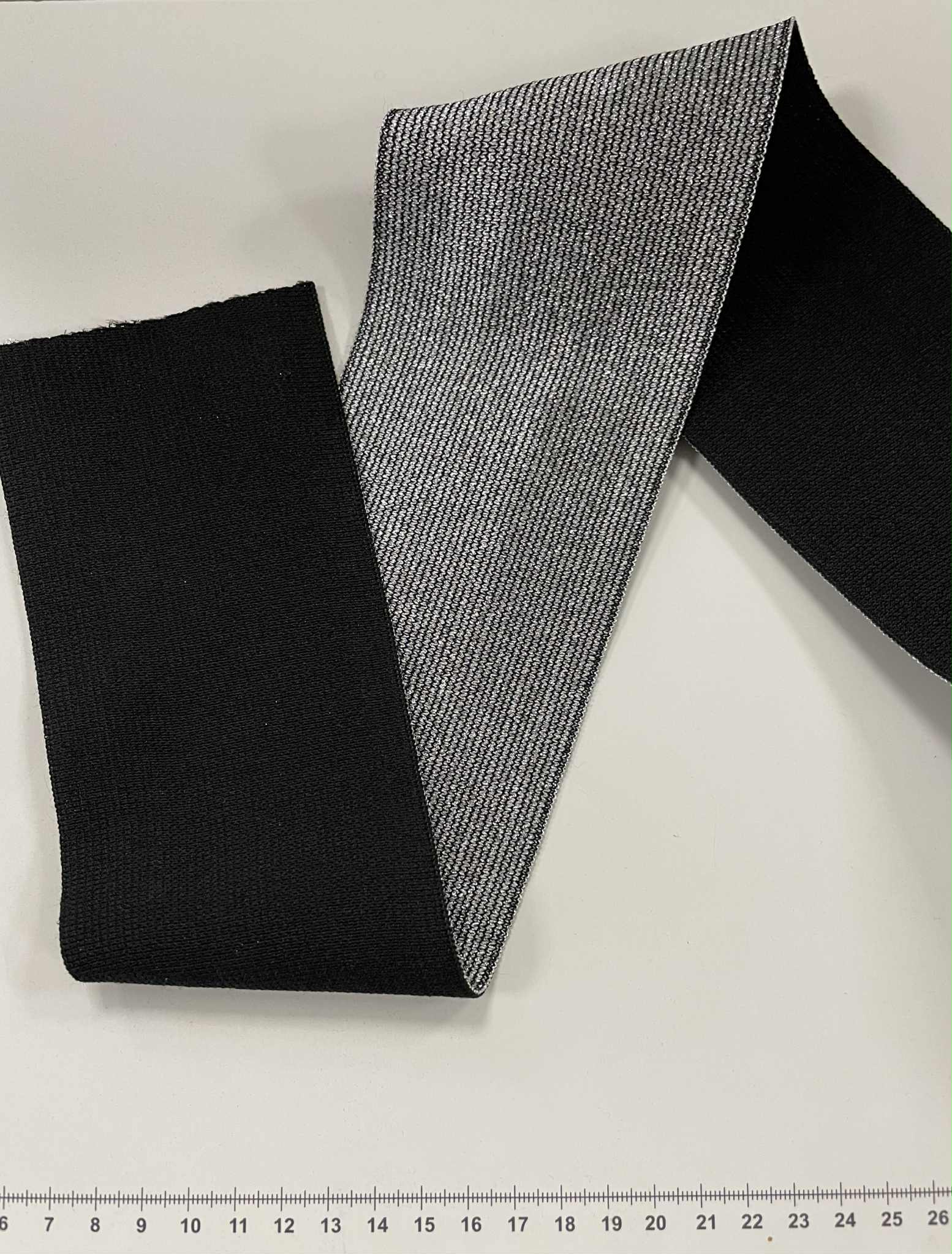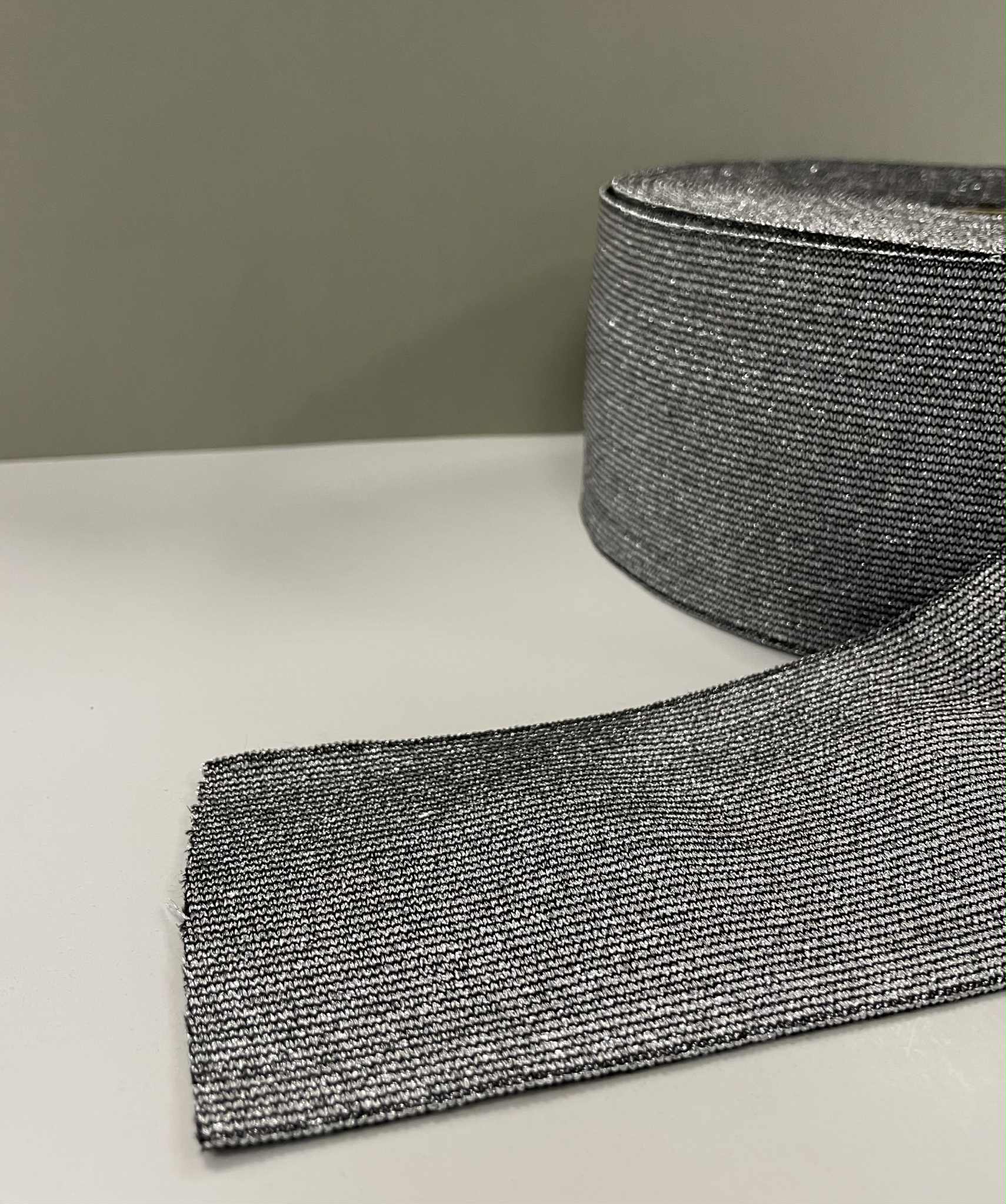 Metalizuota guma 80 mm, Juoda/juoda . Guminė juostelė – tai dažniausiai buityje, rūbų siuvimui naudojama elastinė juostelė. Elastinė juostelė (guma) yra naudojama siuviniuose tam, kad galėtume išgauti gaminio tamprumą atitinkamose jo vietose. Tai viena reikalingiausių priemonių kiekvienos siuvėjos aplinkoje. Gumos būna įvairiausių spalvų, pločio ir net tąsumo. Elastinės juostelės (gumos) būna austos, pintos, apvalios, yra gumos su kilpelėmis sagoms.
