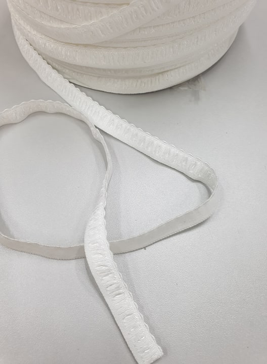Minkšta banguota elastinė guma 10 mm, balta. Elastinė juostelė – tai dažniausiai buityje, rūbų siuvimui naudojama guma. Ši guma tinkama verti į kelnių, sijonų, suknelių juosmenį, tinka rūbų dekoravimui ir ne tik. Elastinė juostelė (guma) yra naudojama siuviniuose tam, kad galėtume išgauti gaminio tamprumą atitinkamose jo vietose. Tai viena reikalingiausių priemonių kiekvienos siuvėjos aplinkoje. Gumos būna įvairiausių spalvų, pločio ir net tąsumo. Elastinės juostelės (gumos) būna austos, pintos, apvalios, su kilpelėmis sagoms, dekoratyvinės. Mūsų turima guma yra aukštos kokybės, tvirta, tinkamai naudojant ilgai išlaiko savo formą ir kokybę. Turime ir spalvotų elastinių juostelių (gumų), kurias galite derinti pagal savo siuvamo gaminio spalvą. Juostos yra pačio įvairiausio pločio: nuo 1 mm iki 60 mm. Plotį taip pat reikėtų pasirinti pagal siuvamo gaminio stilių ir struktūtą. Dekoratyvinė elastinė guma dažniausiai naudojama dekoravimui, palaidinukių, apatinių rūbų apkantavimui ir papuošimui. Guma yra karpoma, kaina nurodyta už 1 m.