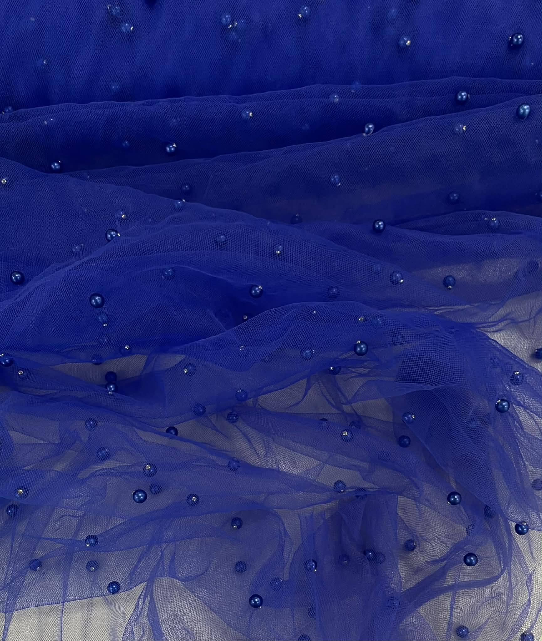 Minkštas tiulis su karoliukais, ryškiai mėlynas