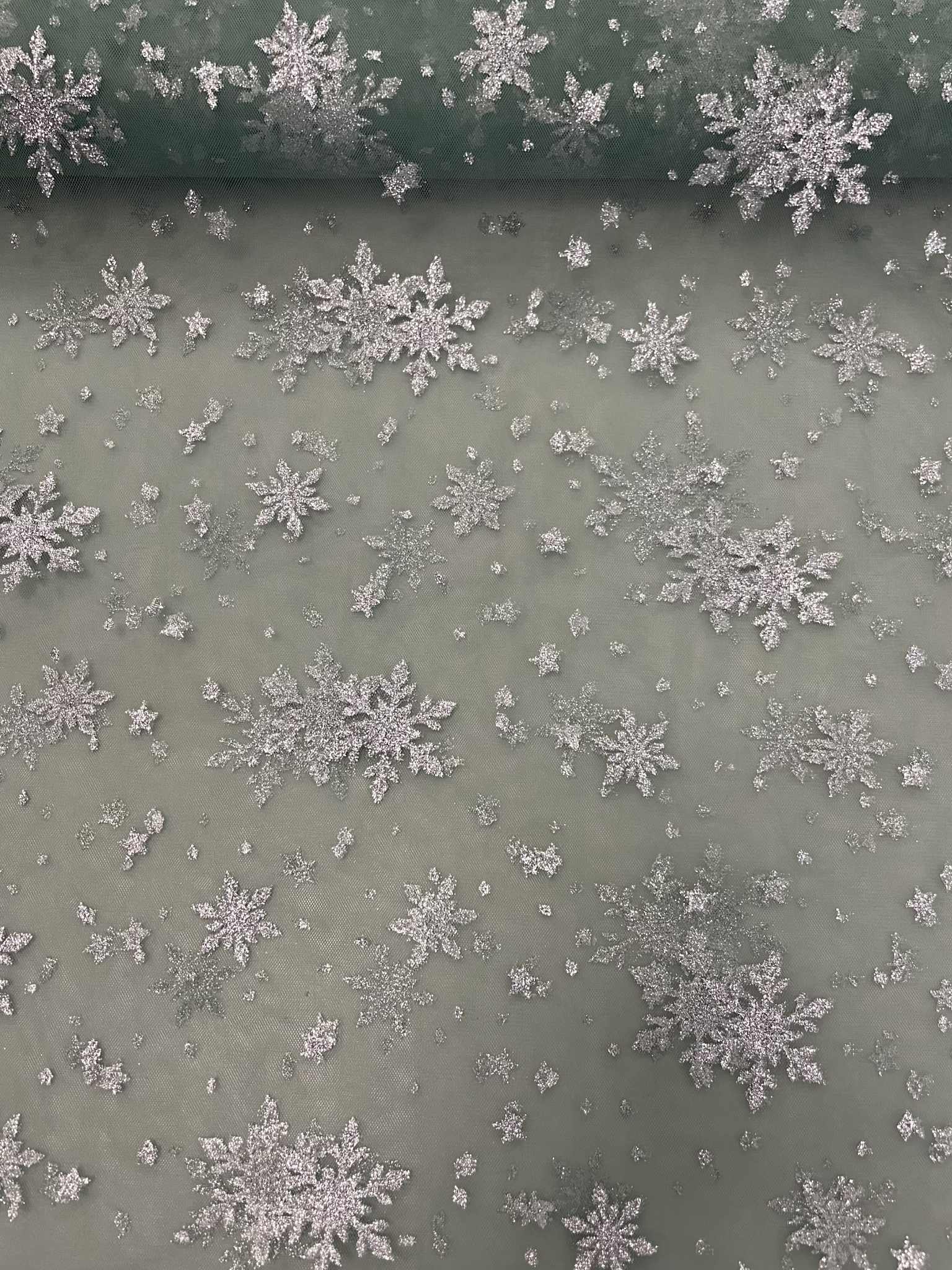 Minkštas tiulis Žalias su blizgančiom snaigėm