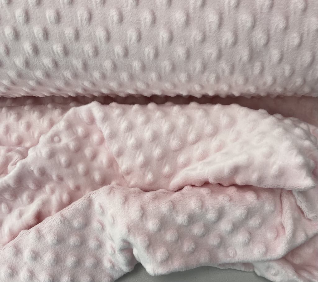 Minky Šviesiai rožinis – tai minkštas ir malonus, su mažu pūkeliu poliesterio audinys, panašus į pliušą. Šis audinys šiuo metu yra vienas populiariausių audinių internetu- sužavėjęs siuvėjas ir vartotojus savo malonumu, minkštumu bei universalumu. Nors audinys yra 100 % poliesteris, tačiau jis nepraleidžia vėjo bei šalčio ir tuo pačiu leidžia odai kvėpuoti. Pūkuotą audinį labai mėgsta vaikai – rūbai, pasiūti iš šio audinio maloniai priglunda, suteikia šiltumo ir saugumo jausmą. Audinys universalus – iš jo galima siūti ne tik rūbus, šalikus, kepures, įvairius aksesuarus, tačiau jis tinka ir chalatų siuvimui, pagalvių, antklodėlių siuvimui, rūbų ir kitų daiktų, žaislų dekoravimui. Minky, tamsiai mėlynas išskirtinumas – ypatinga ir įdomi tekstūra: iškilūs pumpurėliai, kurie suteikia audiniui žaismingumo. Nors ir neturi papildomai elastano, audinys lengvai tempiasi pats iš savęs, todėl yra patogus siūti. Kadangi šis trikotažas yra sertifikuotas, todėl drąsiai tinka siūti rūbus vaikams bei kūdikiams. Įsitikinkite ir Jūs šio audinio išskirtiniu dizainu bei neribotomis panaudojimo galimybėmis!