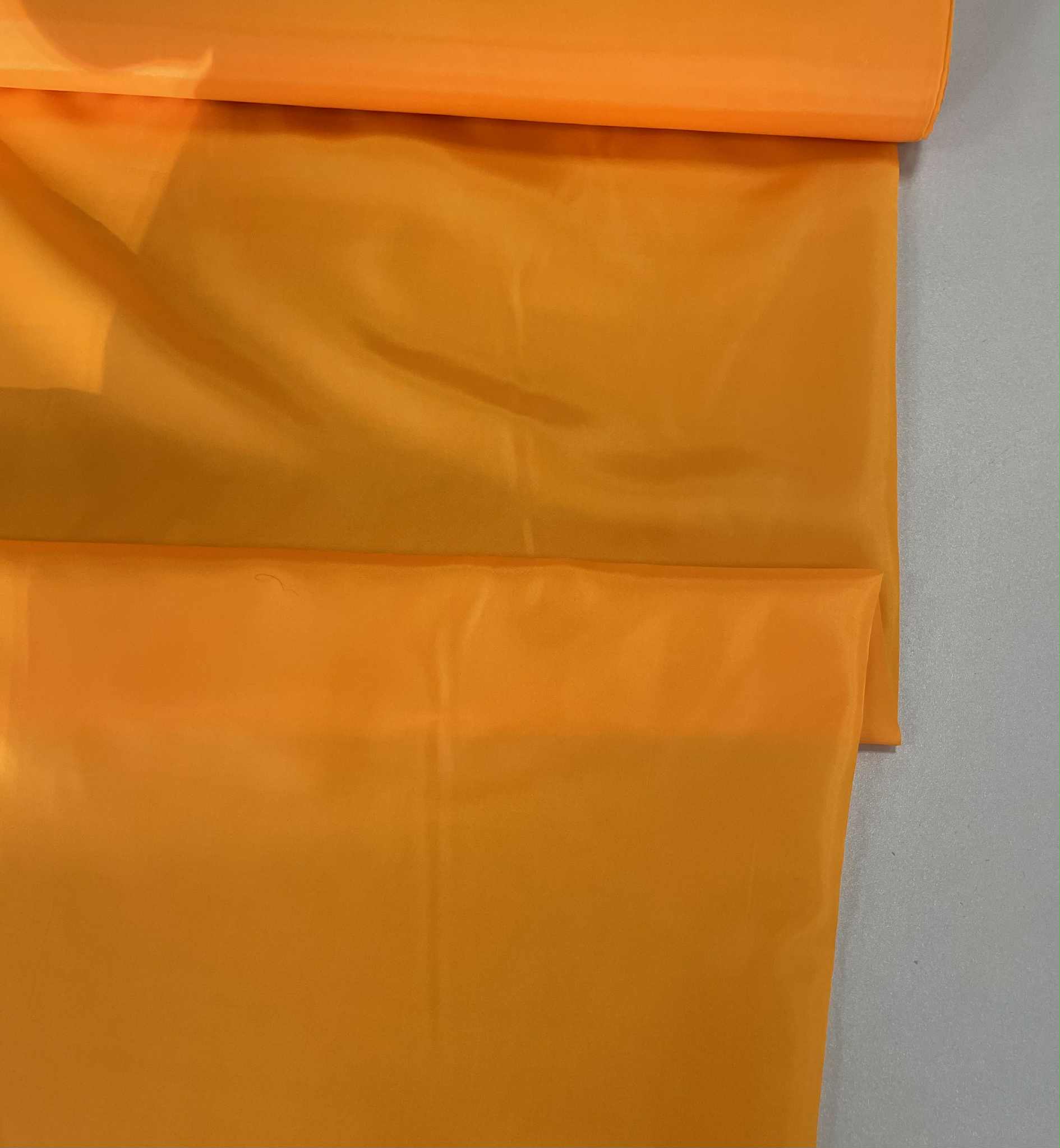 Pamušalinis audinys Oranžinė. Pamušalas apipavidalina drabužius iš vidaus ir apsaugo juos nuo nusidėvėjimo. Pamušalinis audinys reikalingas tam, kad siuvamas gaminys įgytų tvirtą formą, gražiai kristų ir paslėptų siūles. Jis dažniausiai naudojamas kaip vidinė drabužio pusės apdaila, maskuojanti kamšalus, įdėklus, konstrukcijas ir pan. Pamušalinis audinys, kaip apatinis sluoksnis dažniausiai naudojamas siuvant paltus, švarkus, sijonus, sukneles, palaidinukes, kepures ir pan. Pamušalinis audinys yra tankaus audimo ir lengvas. Pamušalas visada turi būti plonesnis nei siuvamo rūbo audinys, lygiu paviršiumi. Dažnai sakoma, kad geras pamušalas turi būti slidus. Ir kuo slidesnis, tuo geresnis. Pamušaliniai audiniai yra veikiami intensyvios trinties, nes priglunda arti kūno, todėl svarbu, kad turėtų šias savybes: lengvumas, lygus paviršius, atsparumas trinčiai, nesiglamžytų, nesielektrintų. Labai svarbu pasirinkti tinkamą pamušalo spalvą, kuri atitiktų pagrindinį audinį. Ji turėtų būti pakankamai tamsi, kad paslėptų blogosios pusės elementus, bet ir ne per tamsi, kad nepersišviestų per viršutinį sluoksnį.