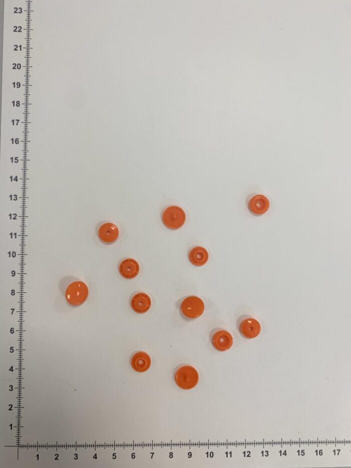 Kokybiškos plastikinės spaudės tinka vaikų rūbeliams, patalynei. Skersmuo 12,4mm.