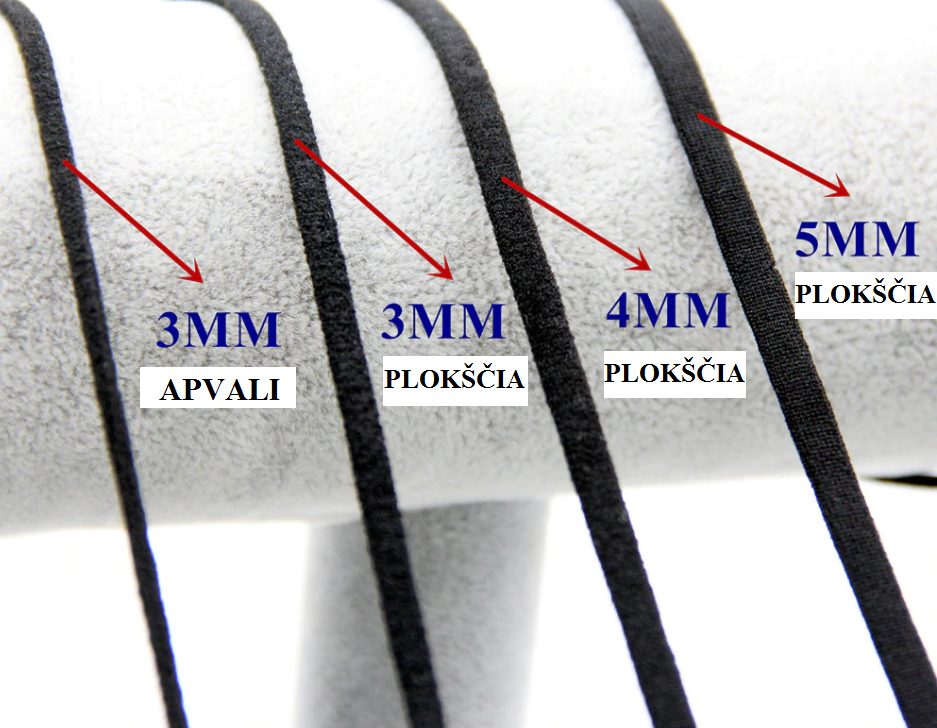 Apvali minkšta elastinė guma 4 mm, Juoda – yra skirta būtent kaukių gamybai. Tai ta pati komfortiška, maloni gumelė, kuri yra ant vienkartinių chirurgini kaukių. Elastinė juostelė – tai dažniausiai buityje, rūbų siuvimui naudojama guma. Ši guma tinkama dekoravimui, rūbų paraukimui ir net šiaip buityje. Elastinė juostelė (guma) yra naudojama siuviniuose tam, kad galėtume išgauti gaminio tamprumą atitinkamose jo vietose. Tai viena reikalingiausių priemonių kiekvienos siuvėjos aplinkoje. Gumos būna įvairiausių spalvų, pločio ir net tąsumo. Elastinės juostelės (gumos) būna austos, pintos, apvalios, yra gumos su kilpelėmis sagoms. Mūsų turima guma yra aukštos kokybės, tvirta, tinkamai naudojant ilgai išlaiko savo formą ir kokybę. Turime ir spalvotų elastinių juostelių (gumų), kurias galite derinti pagal savo siuvamo gaminio spalvą.