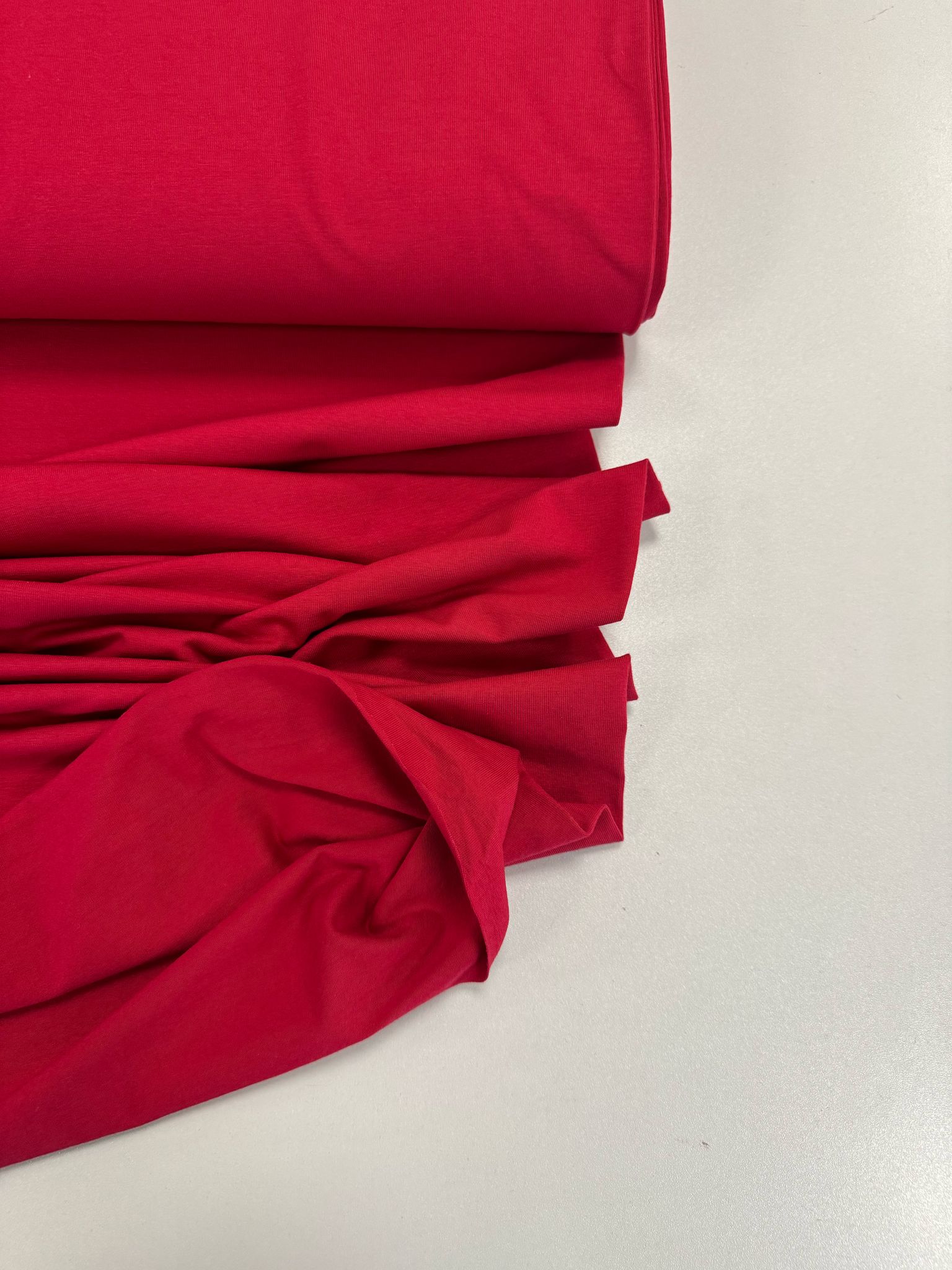 Plonas trikotažas, jersis Tamsus raudonas. Plona medvilnė (jersis) – tai plonas, vienspalvis, lengvai krentantis trikotažas. Džersis (jersis) išsiskiria elastingumu ir atsparumu išilginio plyšimo metu. Medžiaga labai praktiška – ji nereikalauja ypatingos priežiūros. Teisingai naudojant ir prižiūrint šis plonas trikotažas, jersis Drumsta kakava ilgai išlaikys pradinę spalvą, formą ir išliks kokybiškas. Suknelės, sijonai, palaidinukės, tunikos, švarkai bei tamprės pasiūtos iš džersio (jersio) atrodo puikiai, nes medžiaga lengvai apgaubia kūną ir išryškina figūros linijas. Be to, jis suteikia judėjimo laisvę ir begalinį komfortą, nes elastano dėka nevaržo judesių. Ši plona medvilnė (jersis) gali būti naudojama ir kaip storesnio audinio rūbų pamušalas. Kepurės, skatelės, galvos juostos, bandanos – ir dar daug įvairiausių galvos dangalų, pasiūtų iš šios plonos medvilnės (jersio) apsaugos galvą nuo saulės ar vėjo, bet tuo pačiu leis odai kvėpuoti, neprakaituos.