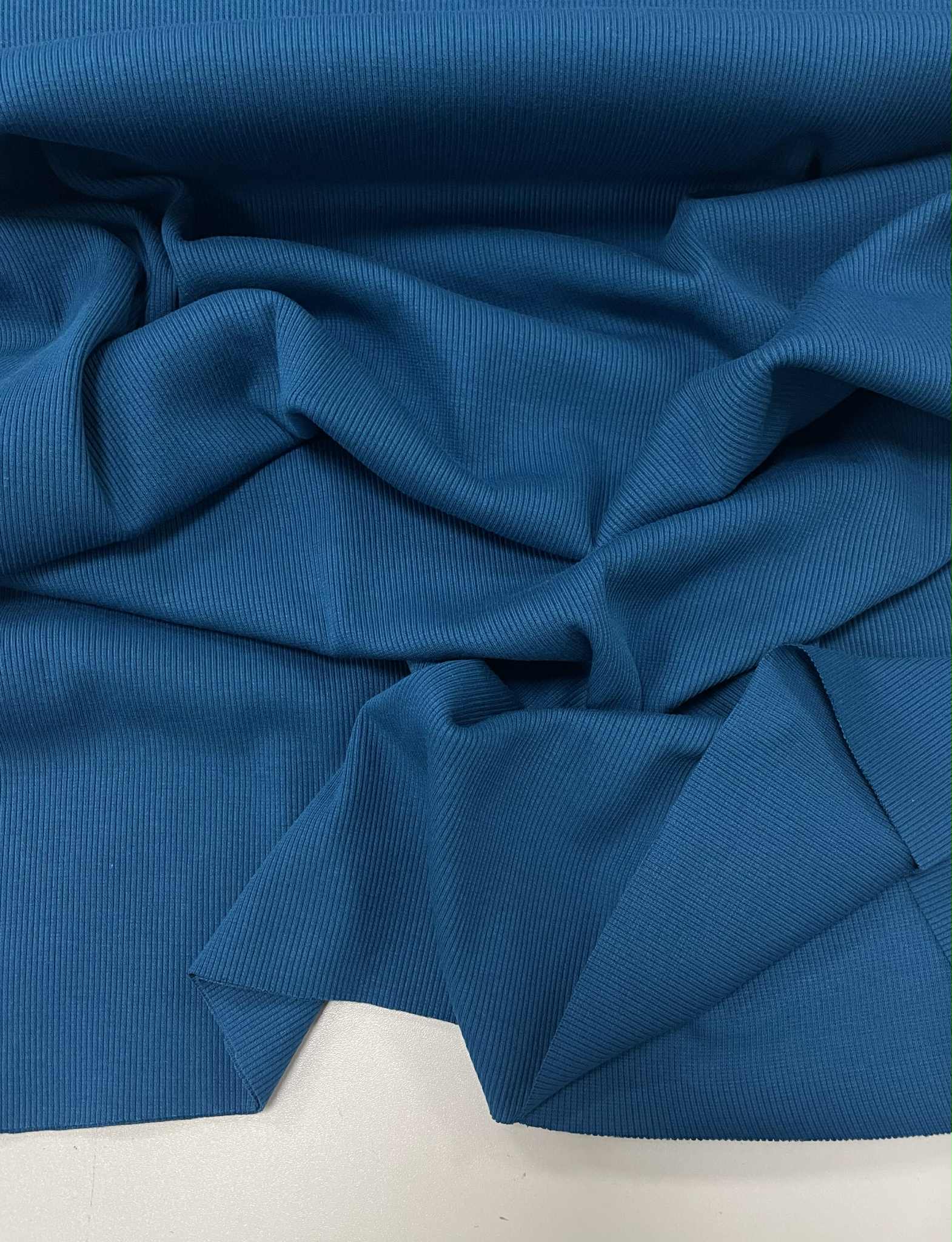 Plonesnis RIB trikotažas Petrol – labai elastingas medvilninis audinys, panašus į megztą gumą. Audinys gaminamas iš medvilnės, tačiau jo sudėtyje yra nemažai elastano. Elastanas suteikia audiniui daugiau tamprumo, o pasiūtam rūbui padeda išsaugoti pradinę formą. Rib trikotažas ne tik natūralus bei malonus audinys, bet ir gerai sugeria bei išgarina drėgmę. Šis trikotažas dažniausiai naudojamas rūbų apdailai – rankogaliams, apykaklėms, kelnių klešnių apačioms užbaigti, ir pan. Kelnių juosmuo, apsiūtas šiuo elastingu trikotažu laikysis tvirčiau ant klubų. Pižamos rankogaliai ir kelnių apačia apsiūta tampriu trikotažu vaikučiui nesmuks ir jo neerzins, vaikas jausis patogiai ir maloniai. Tačiau iš šios medžiagos galima siūti ir sukneles, golfus, sijonus, bliuzonus, kepures. Rūbai iš šio trikotažo nesiglamžo, išskalbus išlaiko savo pradinę formą ir spalvą. Rib trikotažas internetu – tai aukščiausios kokybės, vidutinio storumo, tačiau ypatingai tamprus, minkštas, tvirtas ir malonus trikotažas. Kadangi šis trikotažas yra sertifikuotas, todėl tinkamas siūti ne tik suaugusiųjų rūbams, bet ir vaikams bei kūdikiams. Šis Rib trikotažas yra plonesnis, tinka vasariniams rūbams. Jį drąsiai galima derinti su plonu trikotažu (jersiu).